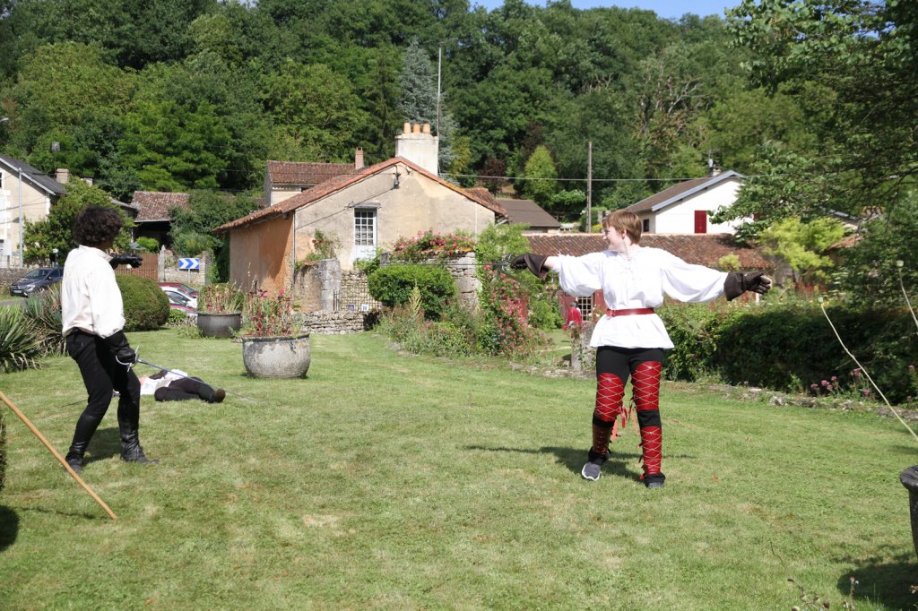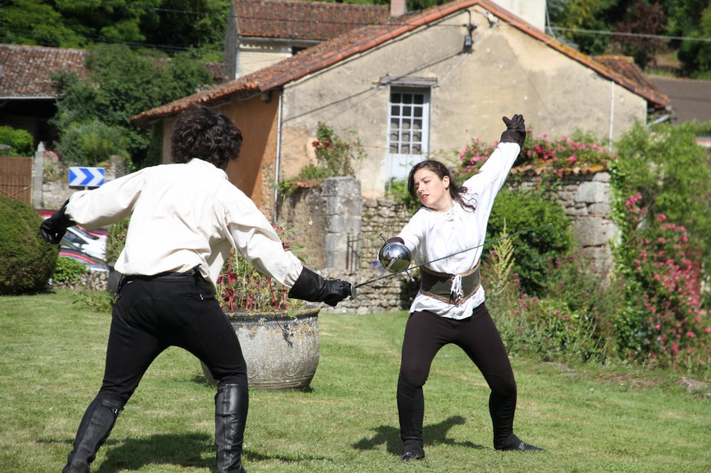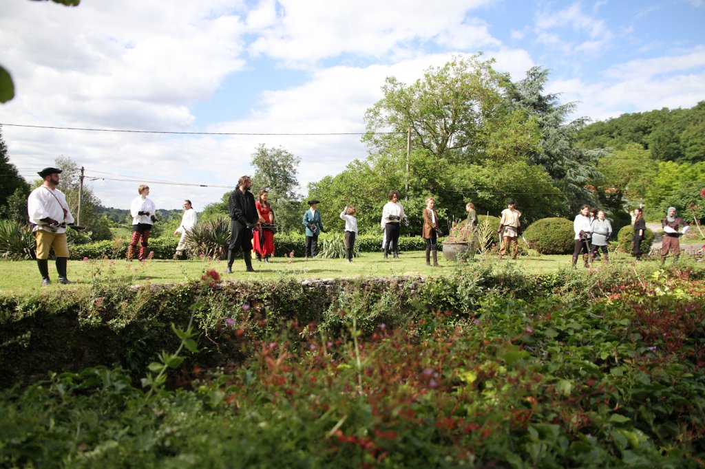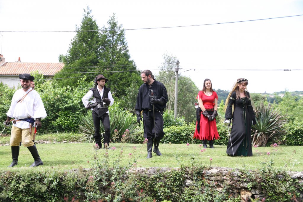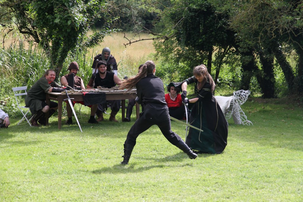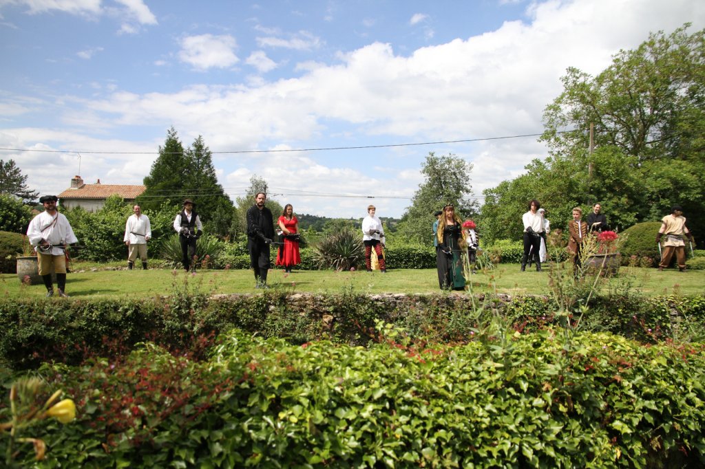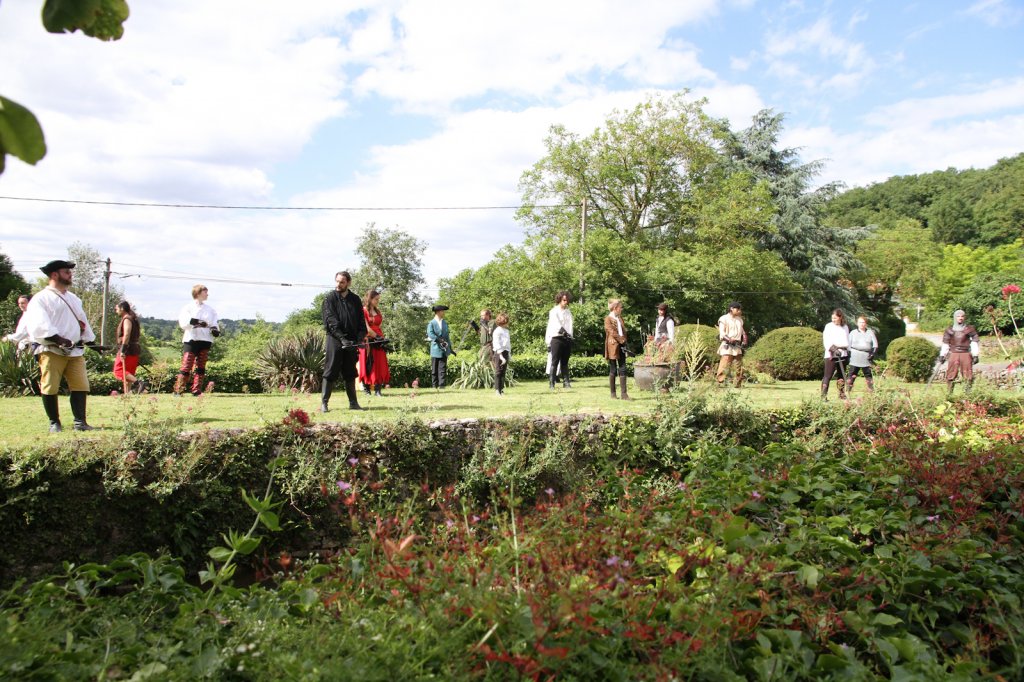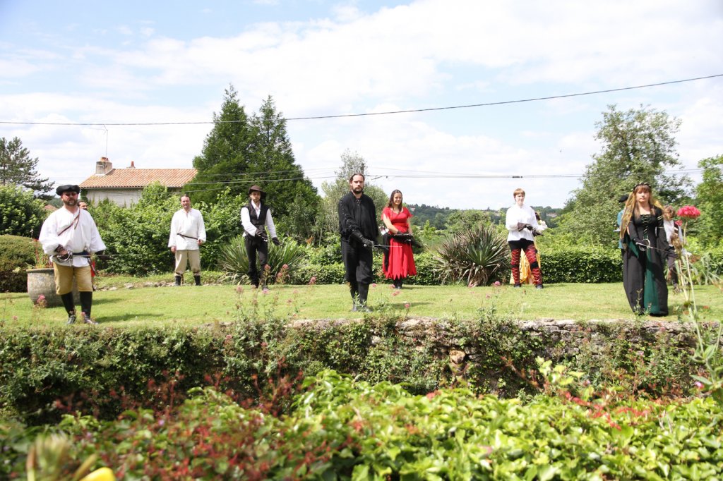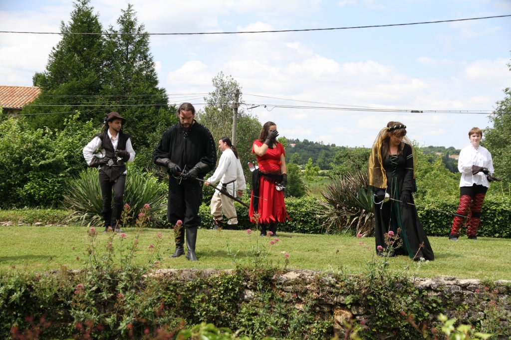La section artistique du club s'est produite Samedi 25 Juin dans les superbes jardins du prieuré de Laverré. Le spectacle préparé par Francis Rameaux a mis en scène 20 bretteurs du club. Décomposé entre 11 scènes, le spectacle comptait l'histoire peut connue du mystérieux vol des bijoux de la reine. Les spectacteurs ont pu apprécier le charme des jardins perturbés par le bruits des lames et les cris des combats.