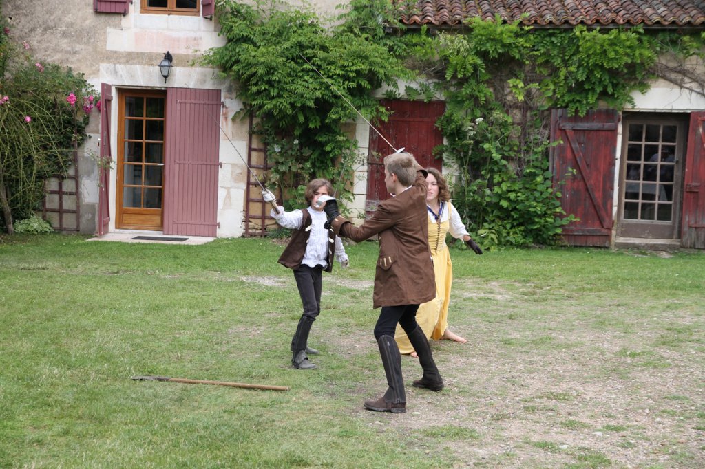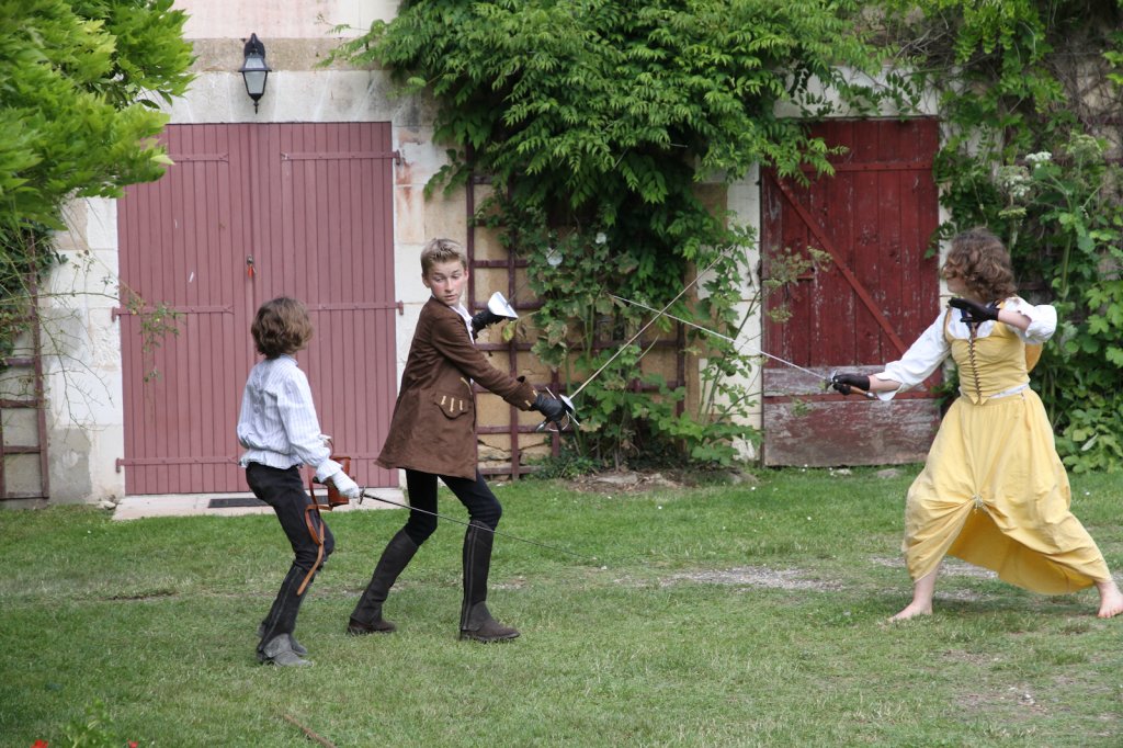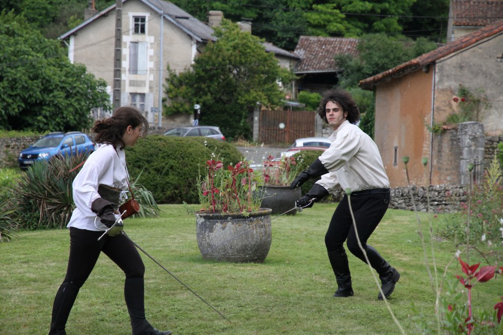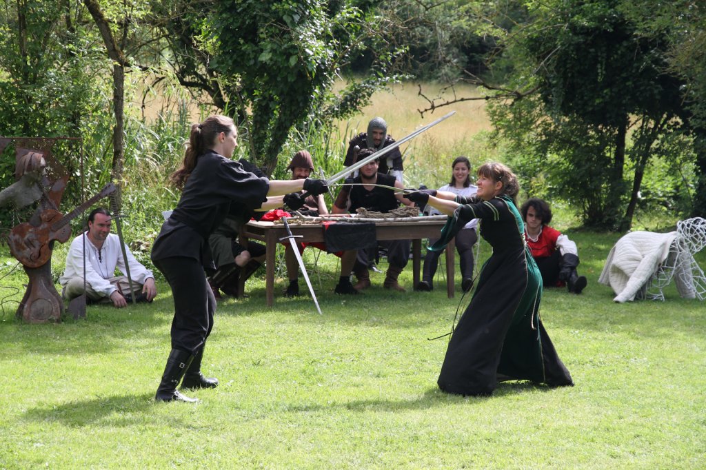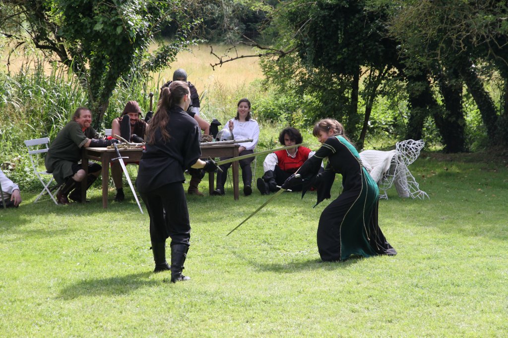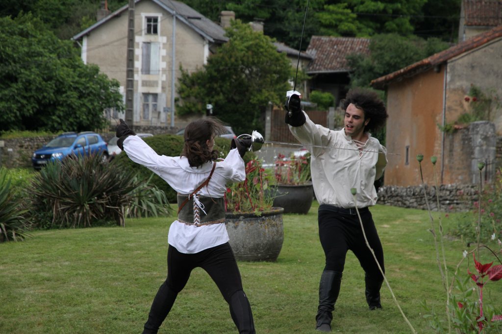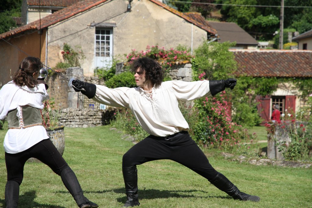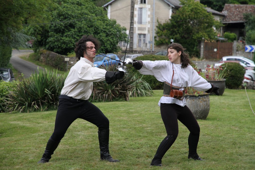 La section artistique du club s'est produite Samedi 25 Juin dans les superbes jardins du prieuré de Laverré. Le spectacle préparé par Francis Rameaux a mis en scène 20 bretteurs du club. Décomposé entre 11 scènes, le spectacle comptait l'histoire peut connue du mystérieux vol des bijoux de la reine. Les spectacteurs ont pu apprécier le charme des jardins perturbés par le bruits des lames et les cris des combats.
