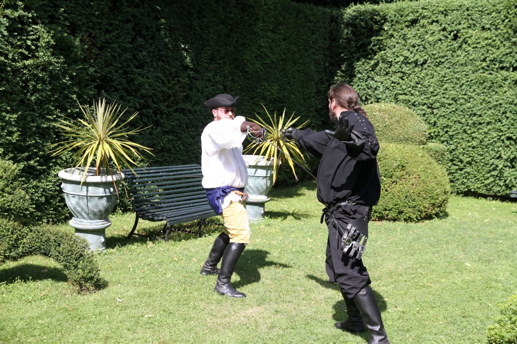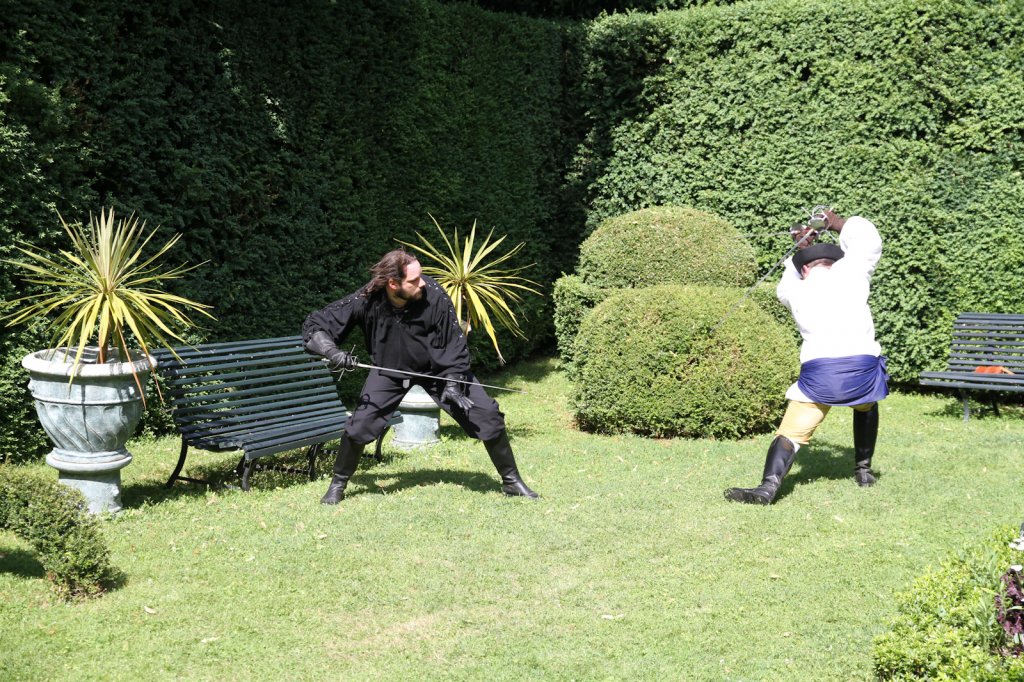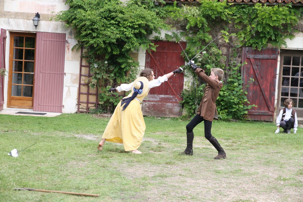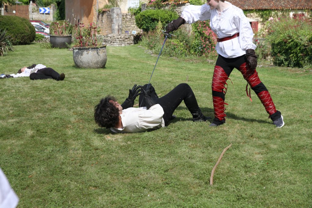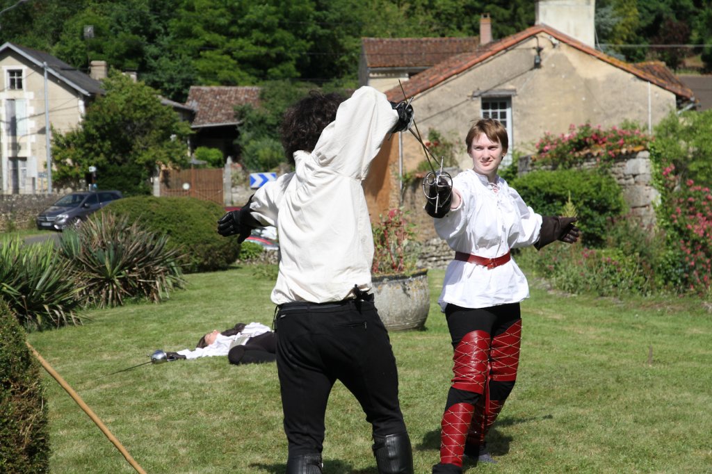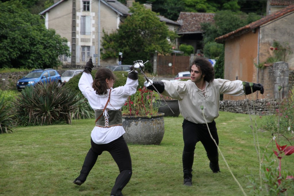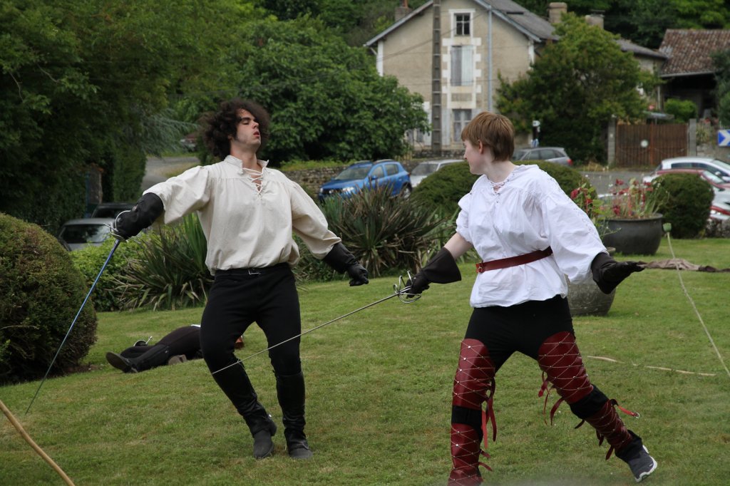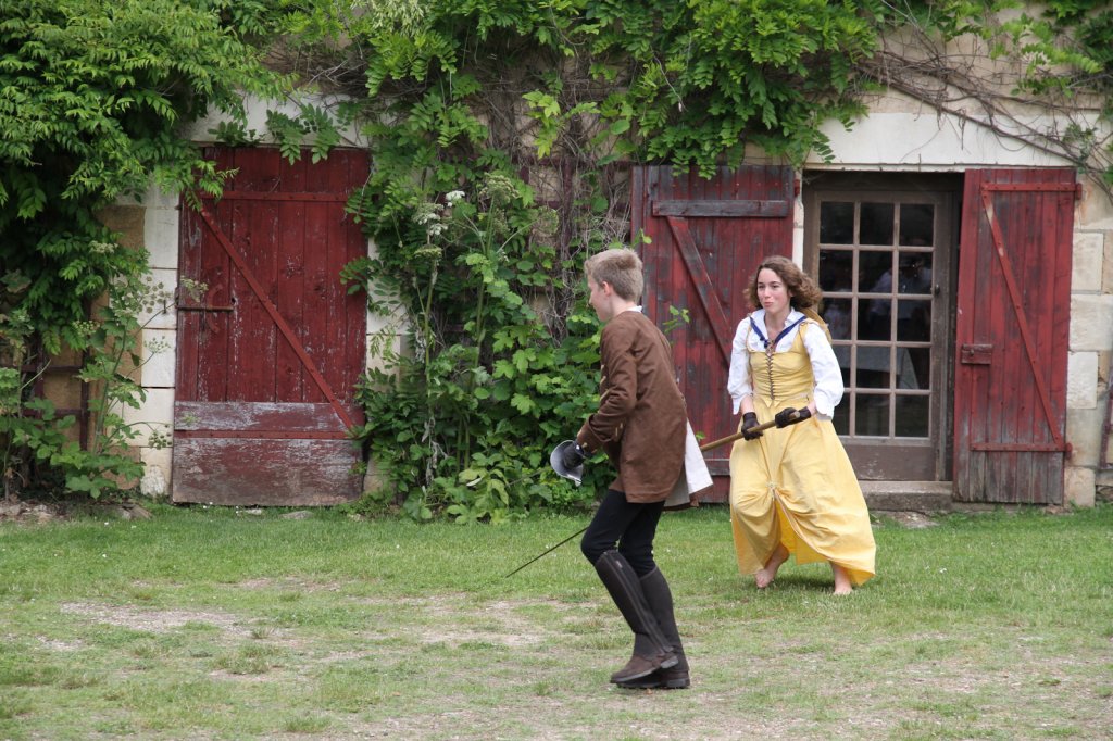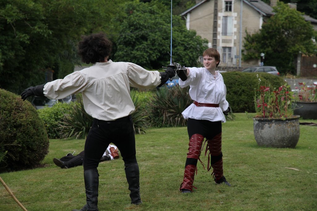 La section artistique du club s'est produite Samedi 25 Juin dans les superbes jardins du prieuré de Laverré. Le spectacle préparé par Francis Rameaux a mis en scène 20 bretteurs du club. Décomposé entre 11 scènes, le spectacle comptait l'histoire peut connue du mystérieux vol des bijoux de la reine. Les spectacteurs ont pu apprécier le charme des jardins perturbés par le bruits des lames et les cris des combats.