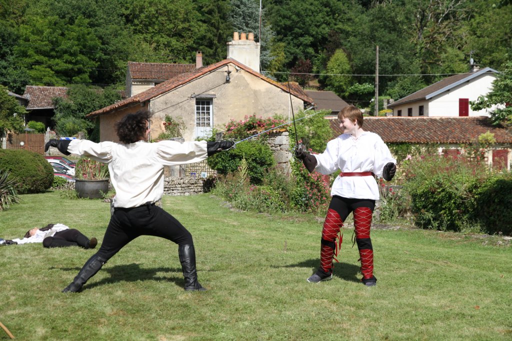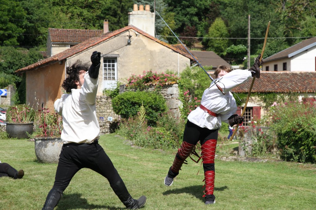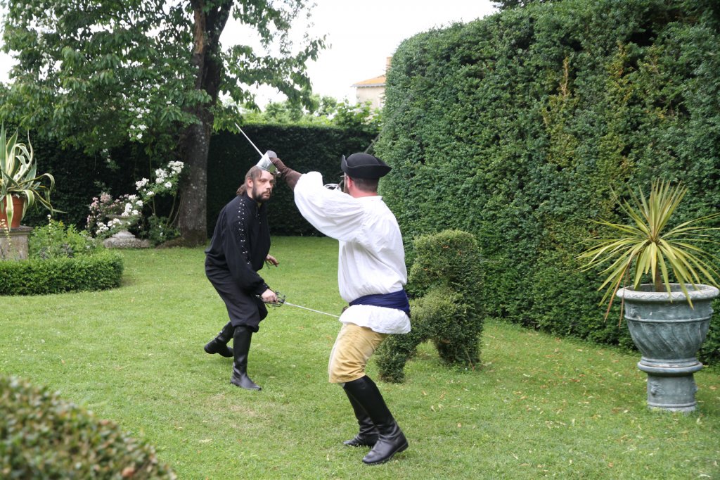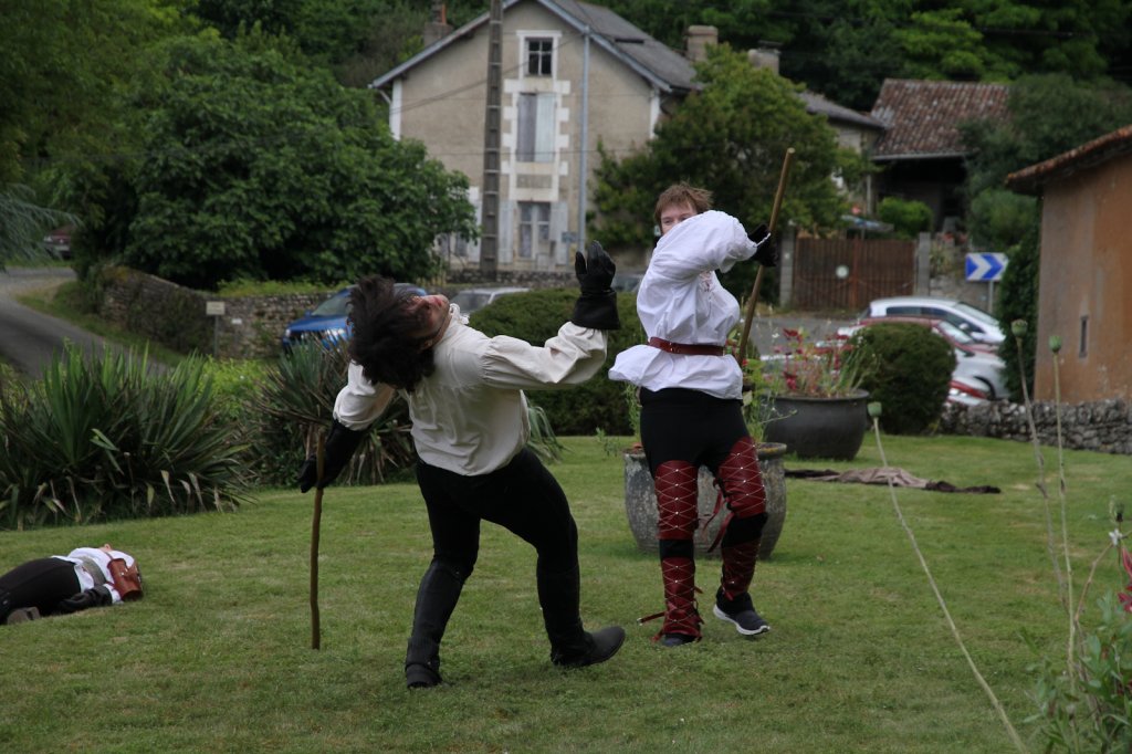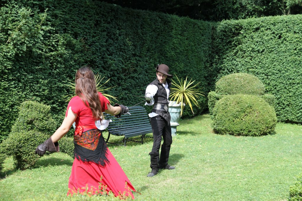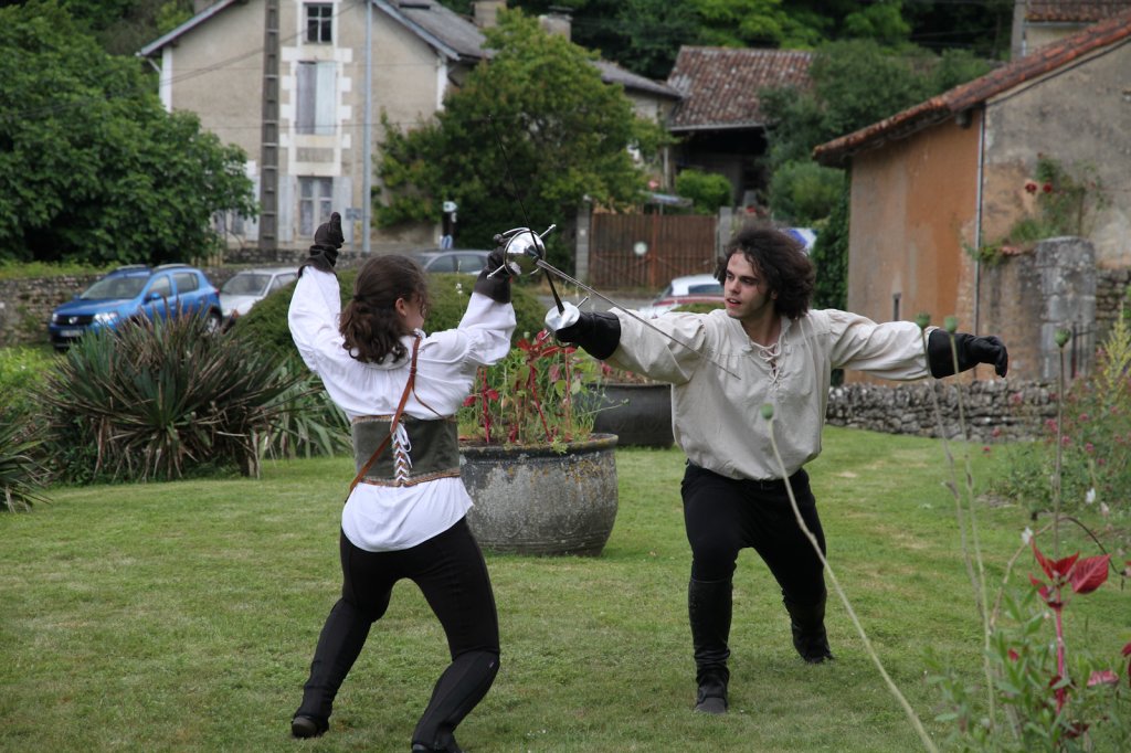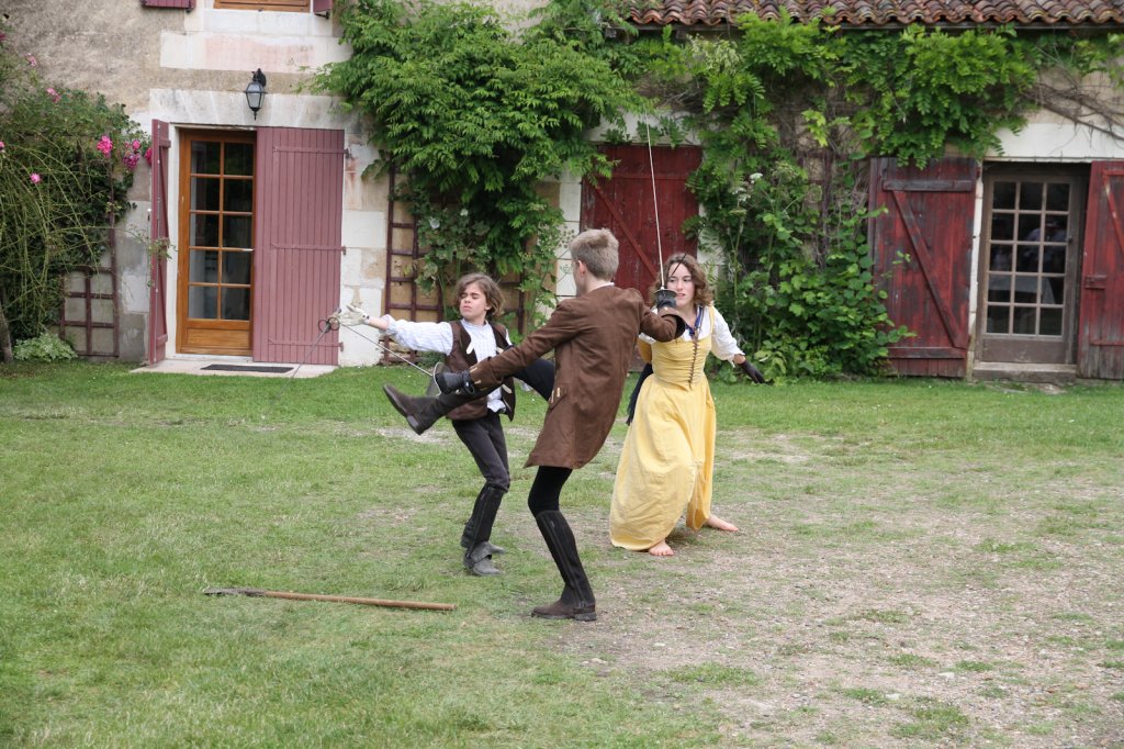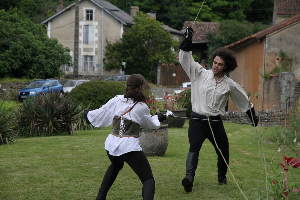 La section artistique du club s'est produite Samedi 25 Juin dans les superbes jardins du prieuré de Laverré. Le spectacle préparé par Francis Rameaux a mis en scène 20 bretteurs du club. Décomposé entre 11 scènes, le spectacle comptait l'histoire peut connue du mystérieux vol des bijoux de la reine. Les spectacteurs ont pu apprécier le charme des jardins perturbés par le bruits des lames et les cris des combats.