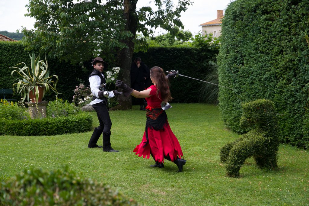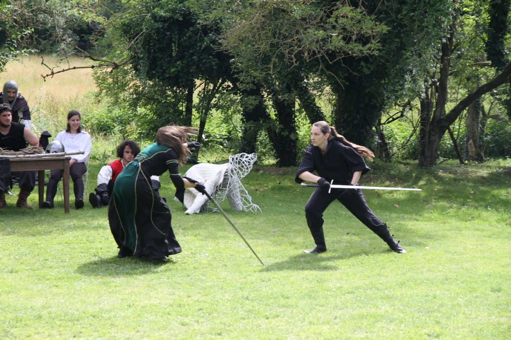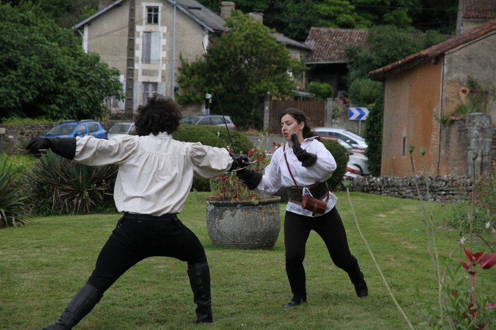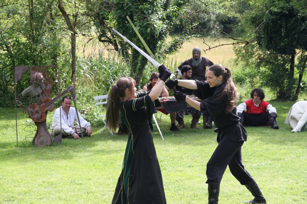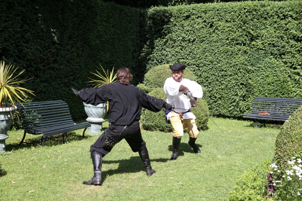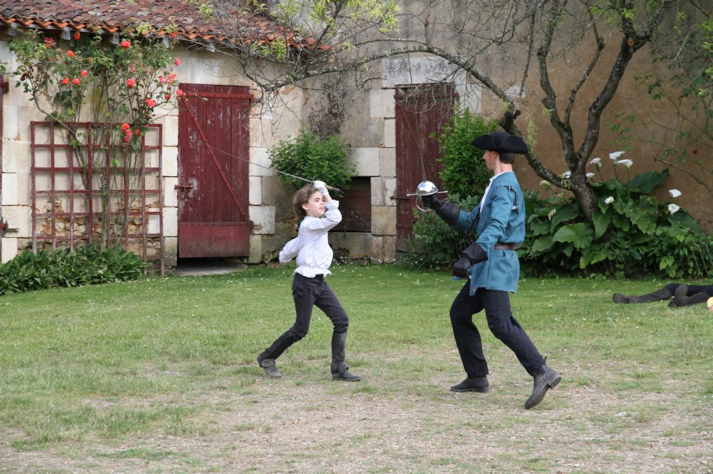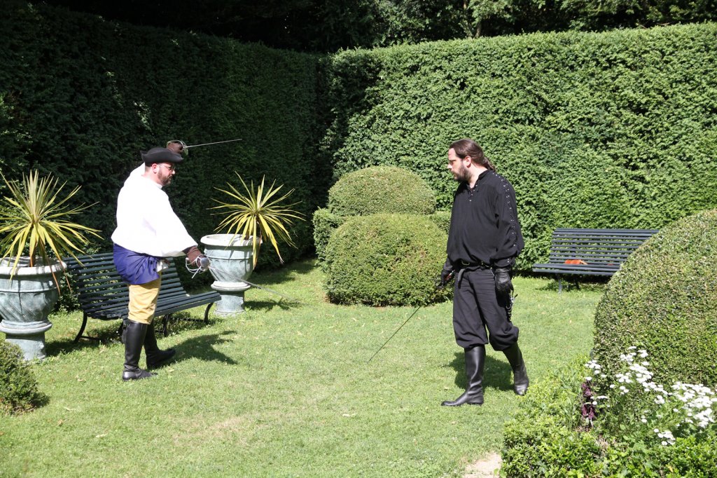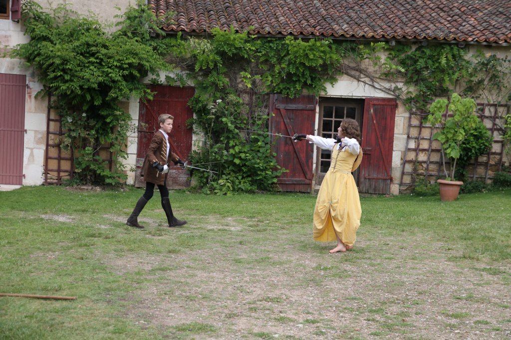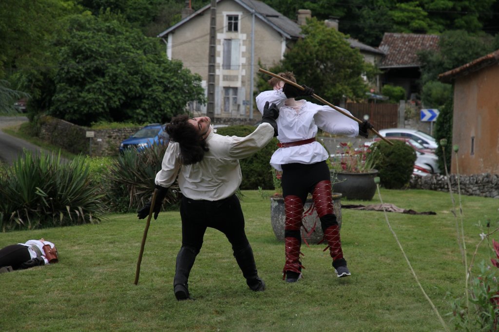 La section artistique du club s'est produite Samedi 25 Juin dans les superbes jardins du prieuré de Laverré. Le spectacle préparé par Francis Rameaux a mis en scène 20 bretteurs du club. Décomposé entre 11 scènes, le spectacle comptait l'histoire peut connue du mystérieux vol des bijoux de la reine. Les spectacteurs ont pu apprécier le charme des jardins perturbés par le bruits des lames et les cris des combats.