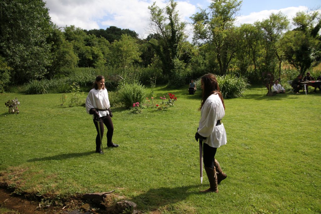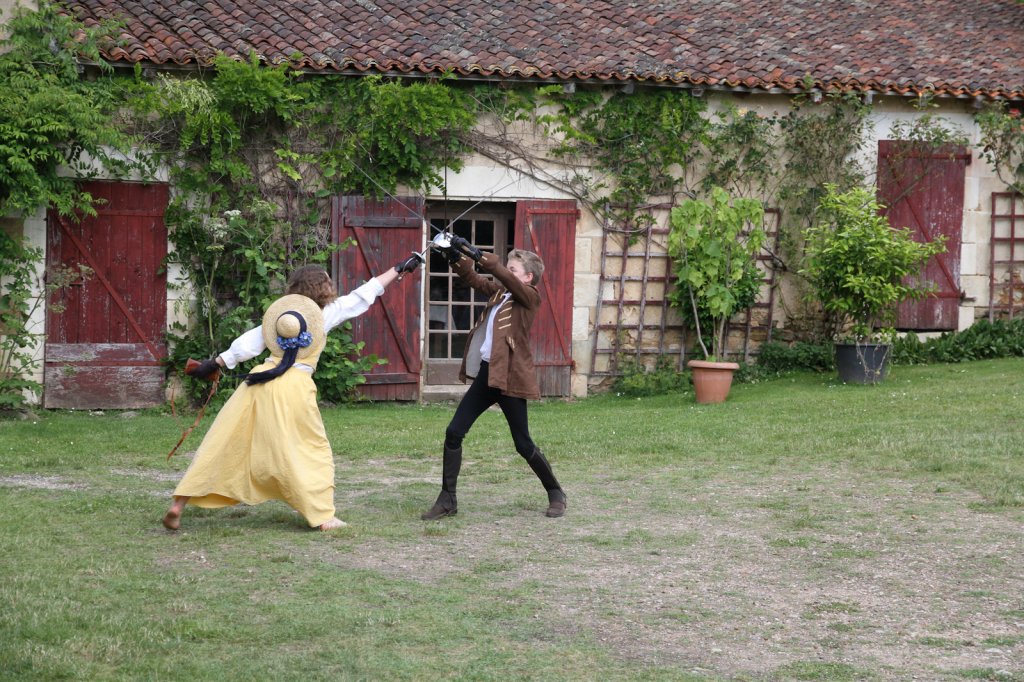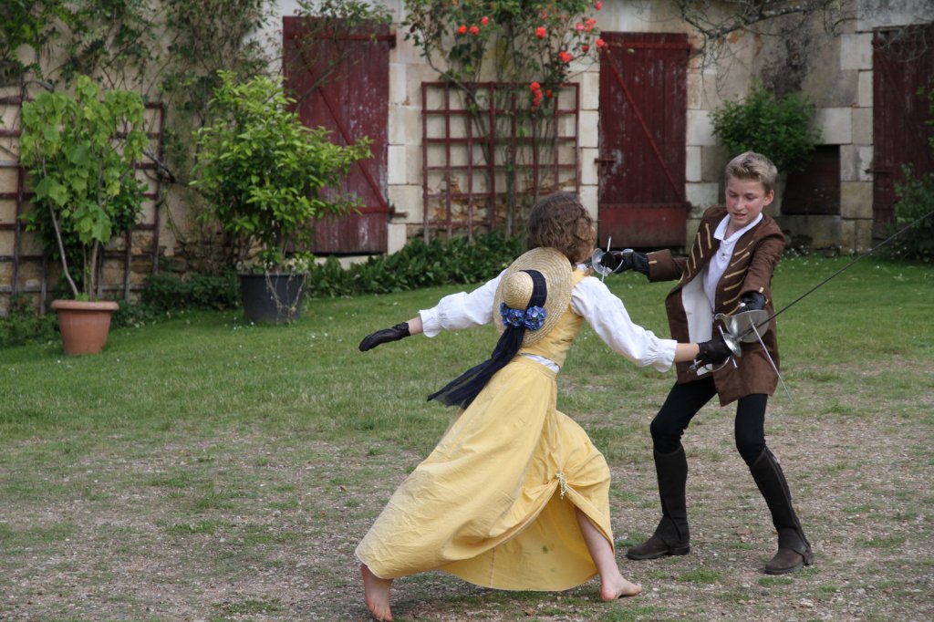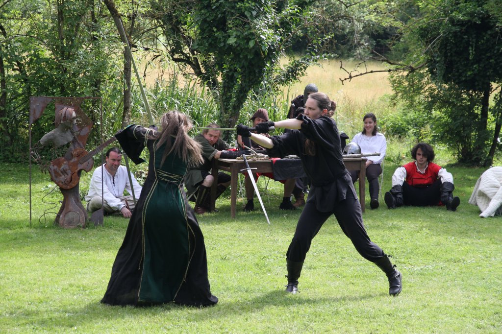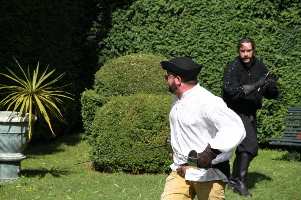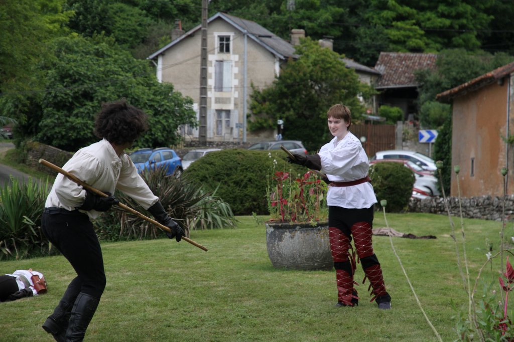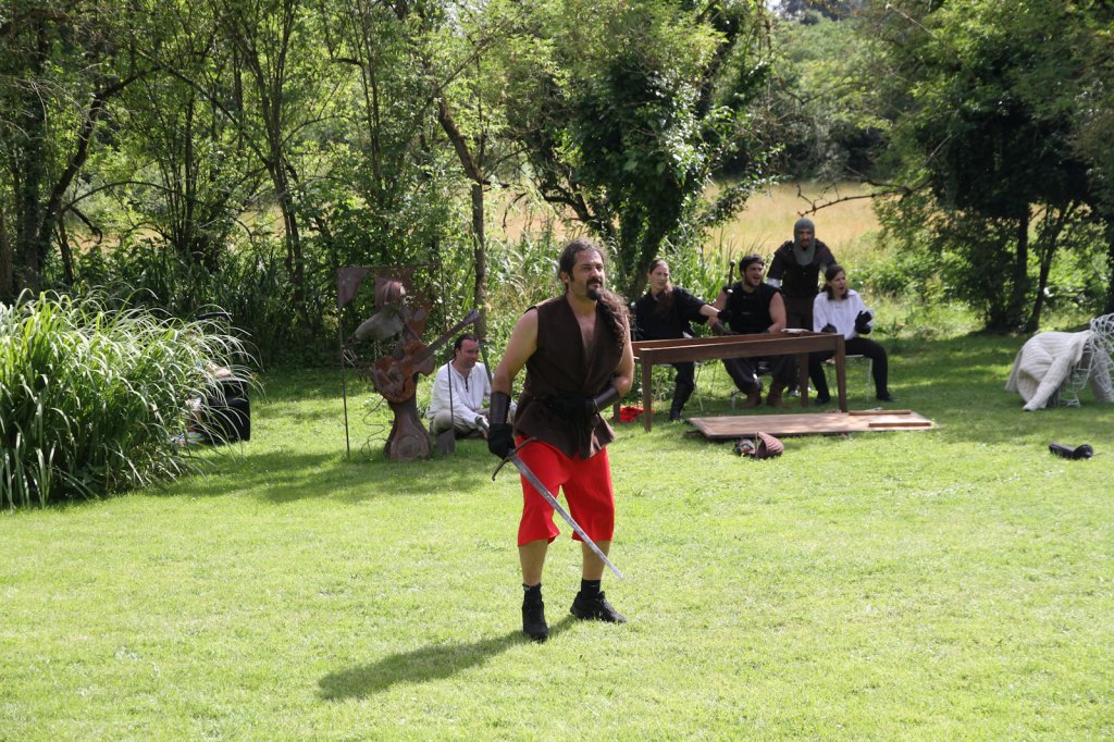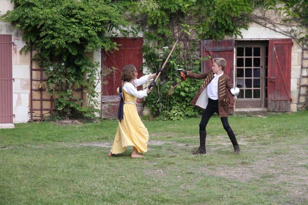 La section artistique du club s'est produite Samedi 25 Juin dans les superbes jardins du prieuré de Laverré. Le spectacle préparé par Francis Rameaux a mis en scène 20 bretteurs du club. Décomposé entre 11 scènes, le spectacle comptait l'histoire peut connue du mystérieux vol des bijoux de la reine. Les spectacteurs ont pu apprécier le charme des jardins perturbés par le bruits des lames et les cris des combats.