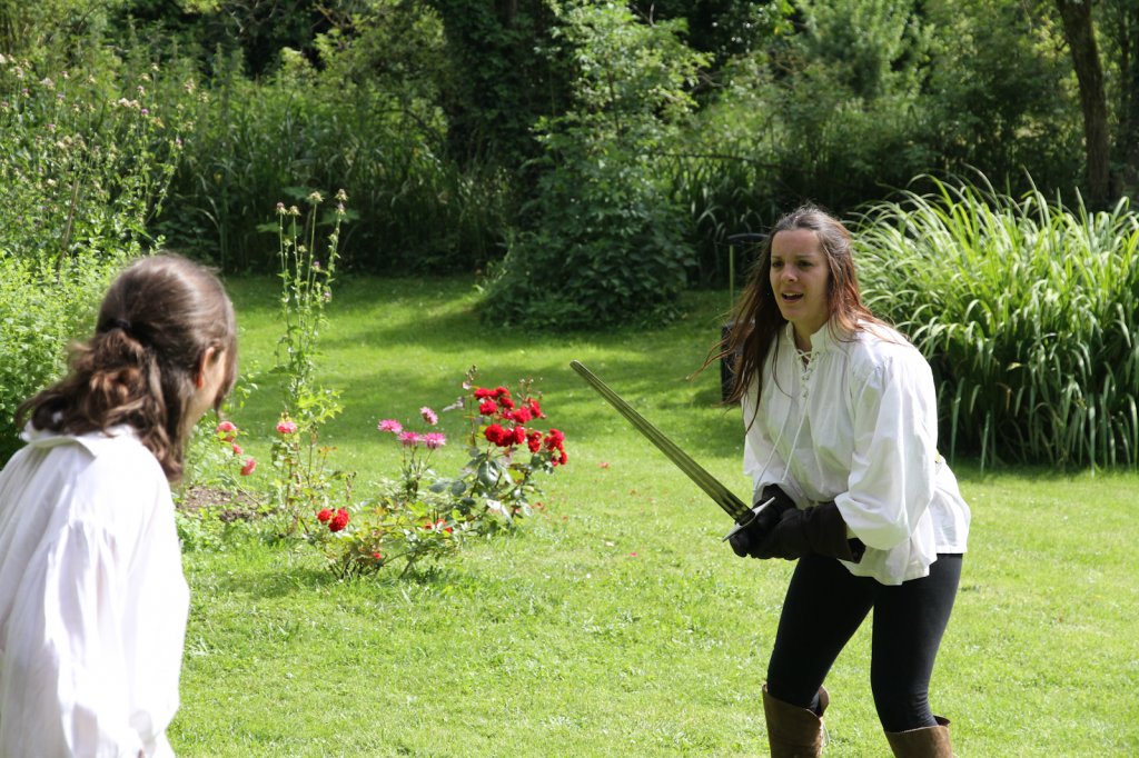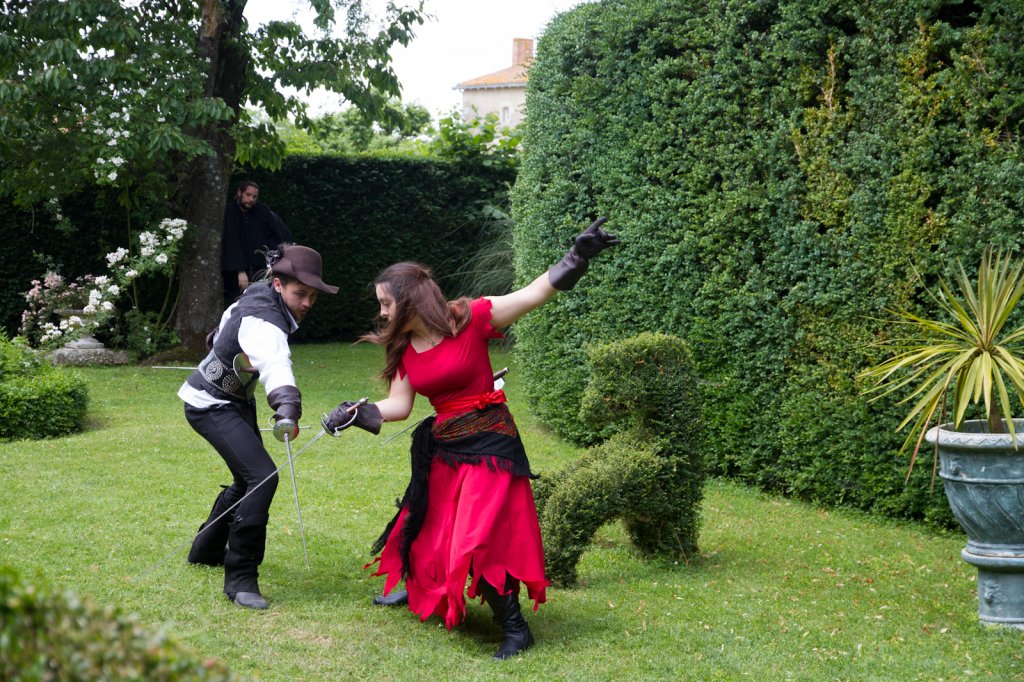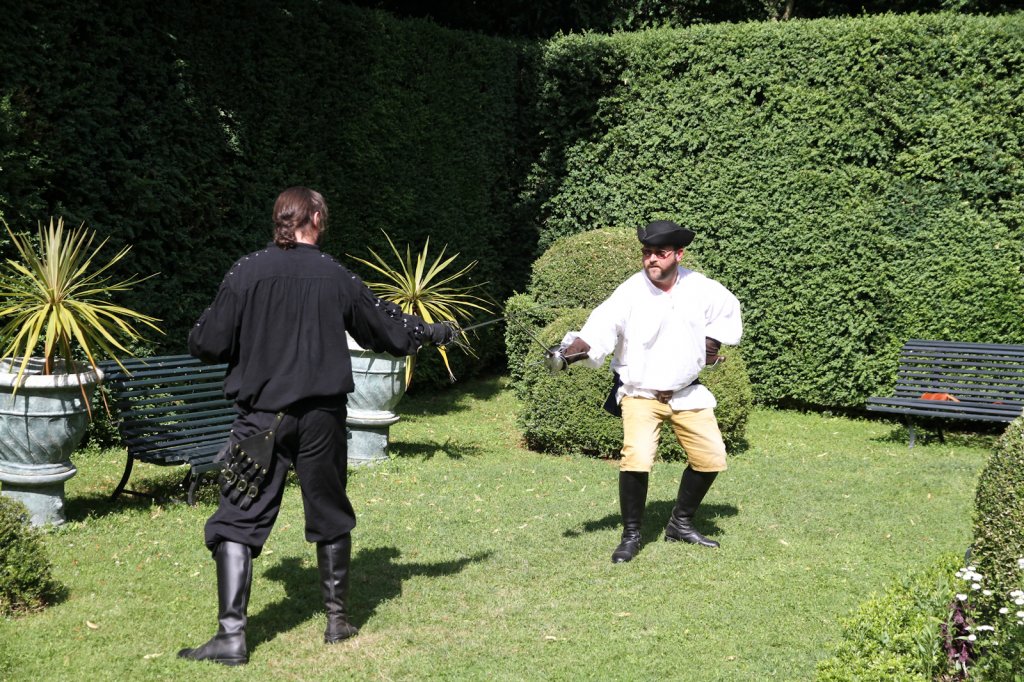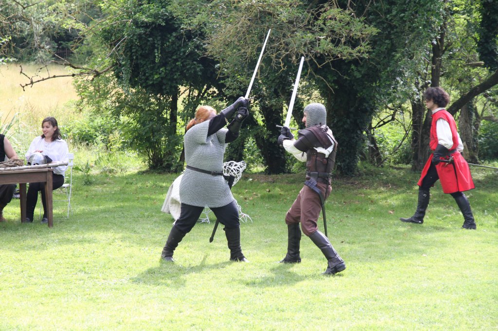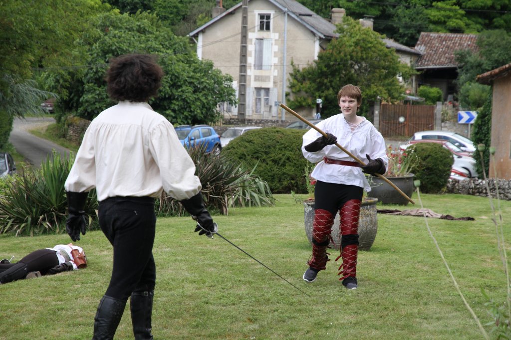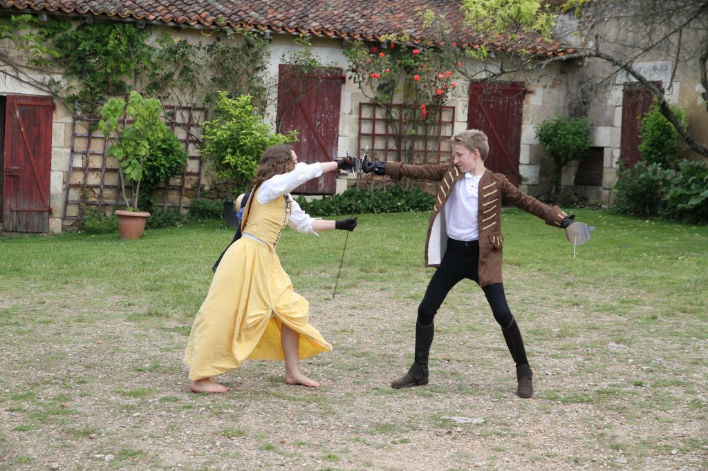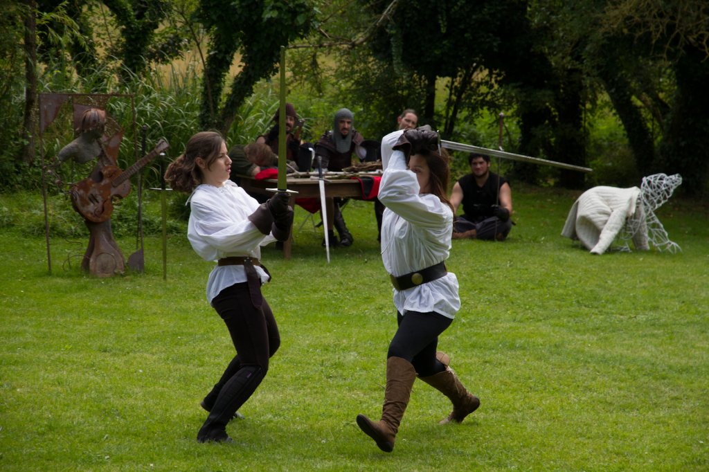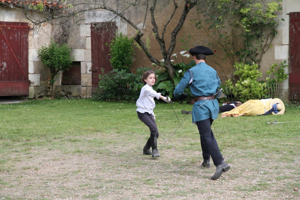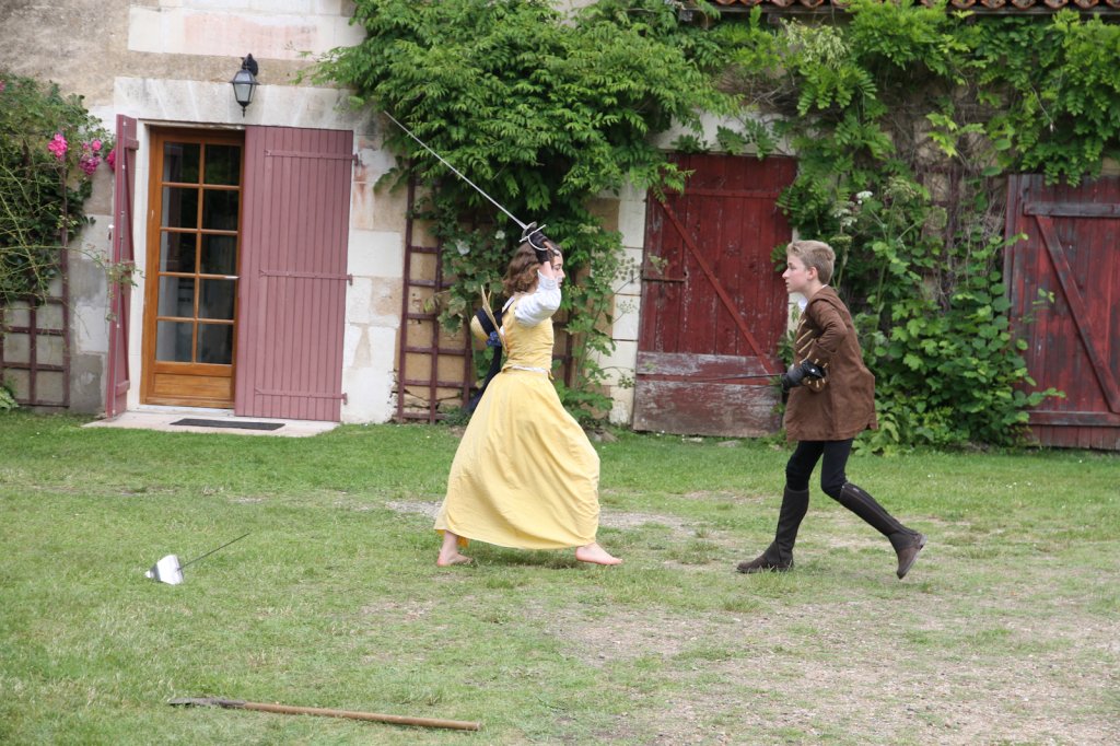 La section artistique du club s'est produite Samedi 25 Juin dans les superbes jardins du prieuré de Laverré. Le spectacle préparé par Francis Rameaux a mis en scène 20 bretteurs du club. Décomposé entre 11 scènes, le spectacle comptait l'histoire peut connue du mystérieux vol des bijoux de la reine. Les spectacteurs ont pu apprécier le charme des jardins perturbés par le bruits des lames et les cris des combats.