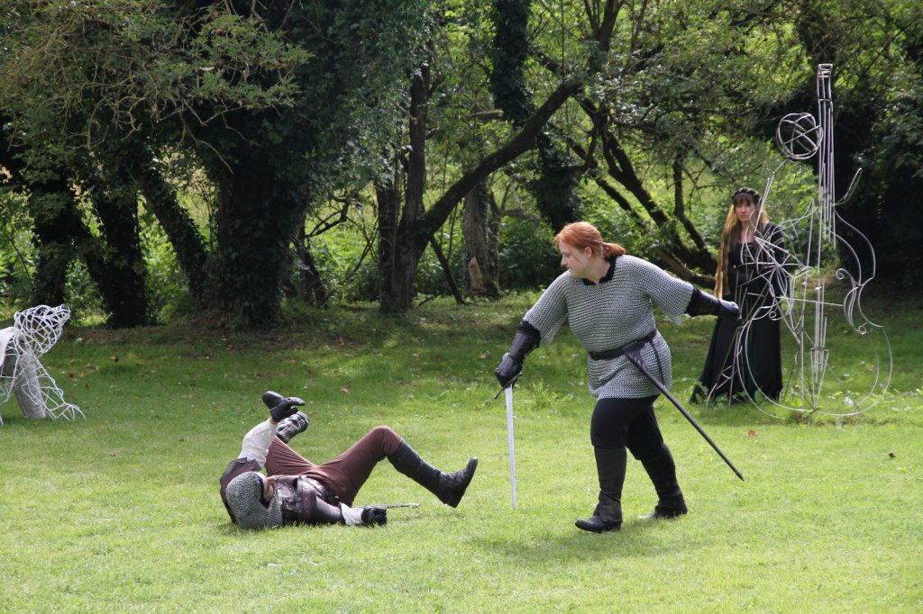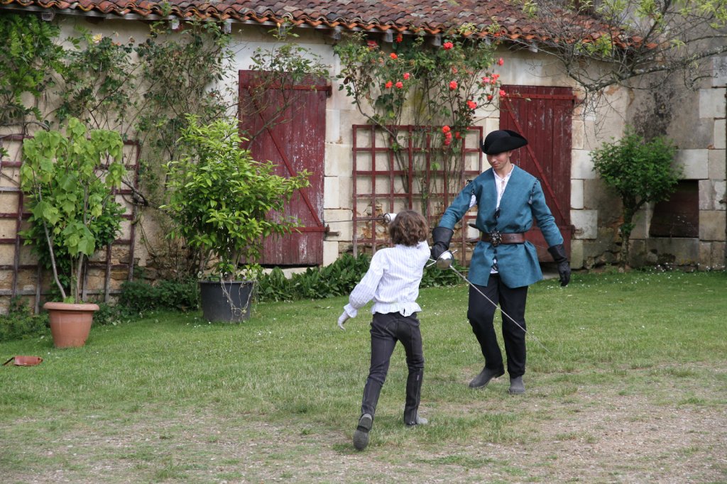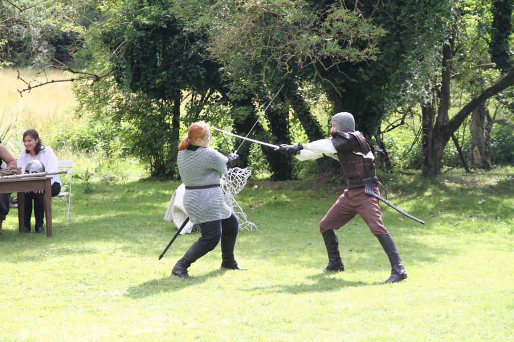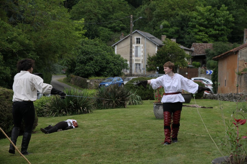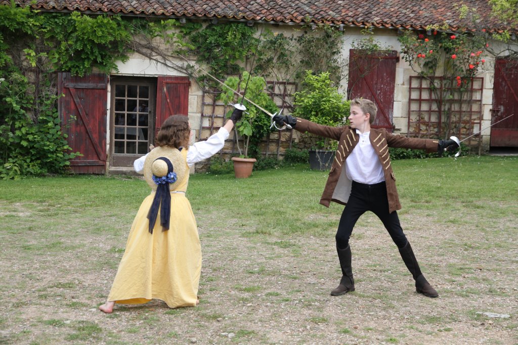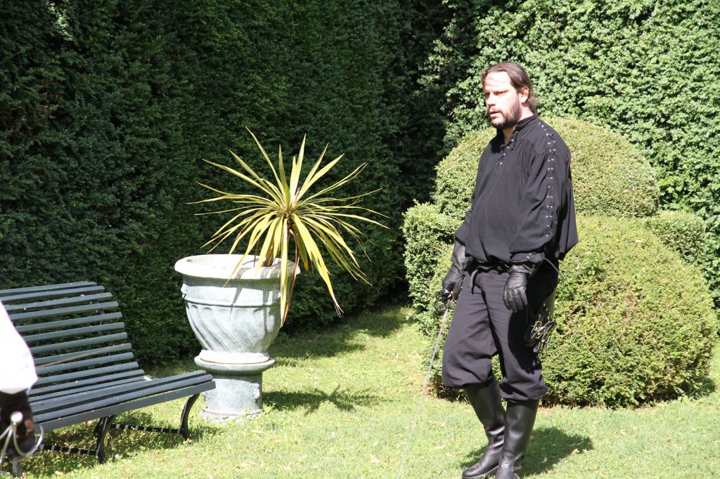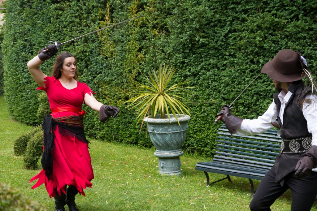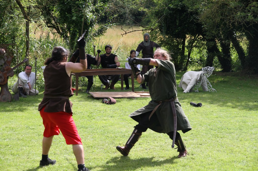 La section artistique du club s'est produite Samedi 25 Juin dans les superbes jardins du prieuré de Laverré. Le spectacle préparé par Francis Rameaux a mis en scène 20 bretteurs du club. Décomposé entre 11 scènes, le spectacle comptait l'histoire peut connue du mystérieux vol des bijoux de la reine. Les spectacteurs ont pu apprécier le charme des jardins perturbés par le bruits des lames et les cris des combats.