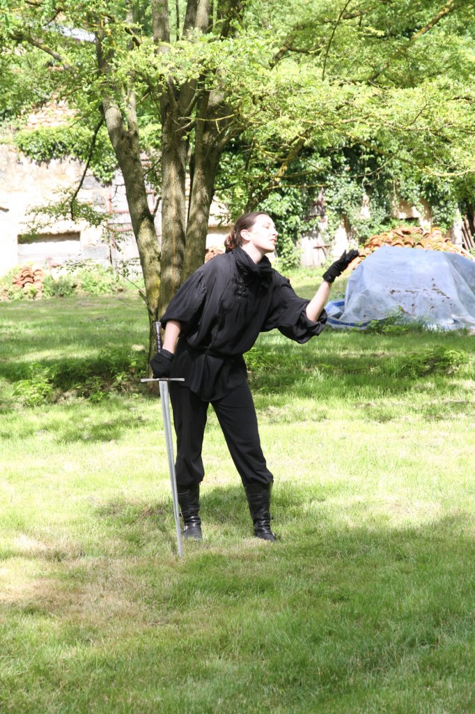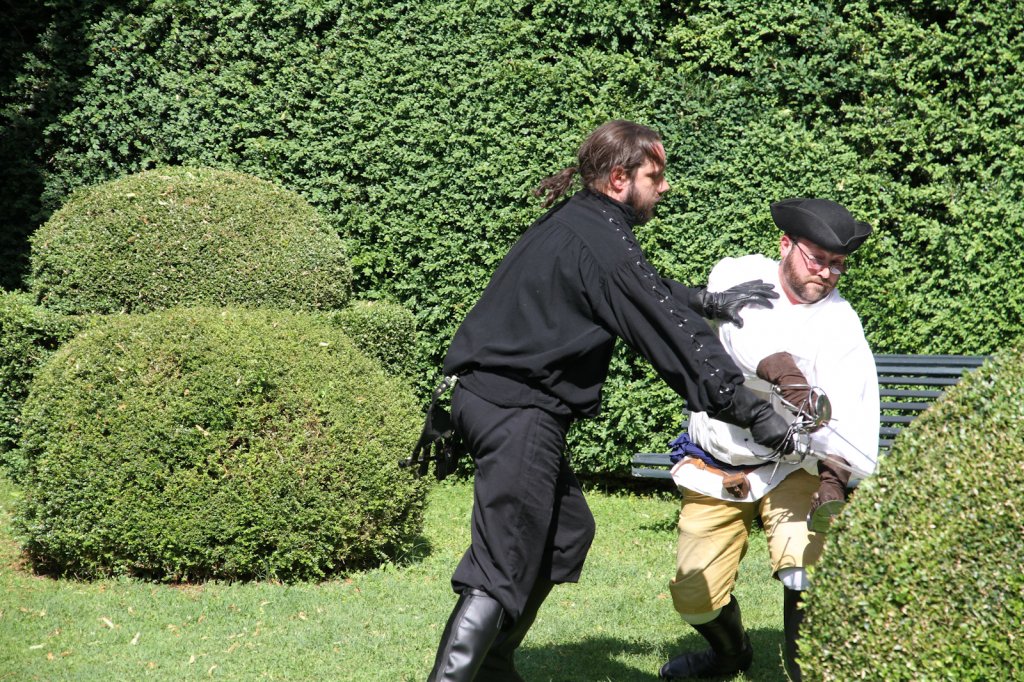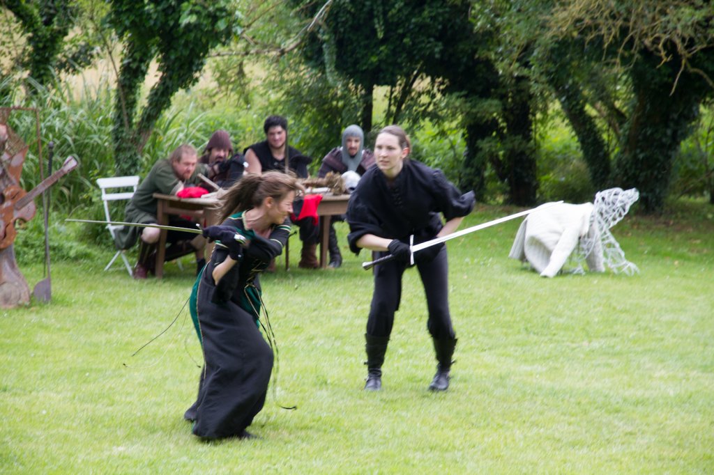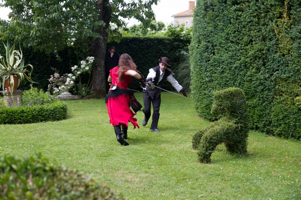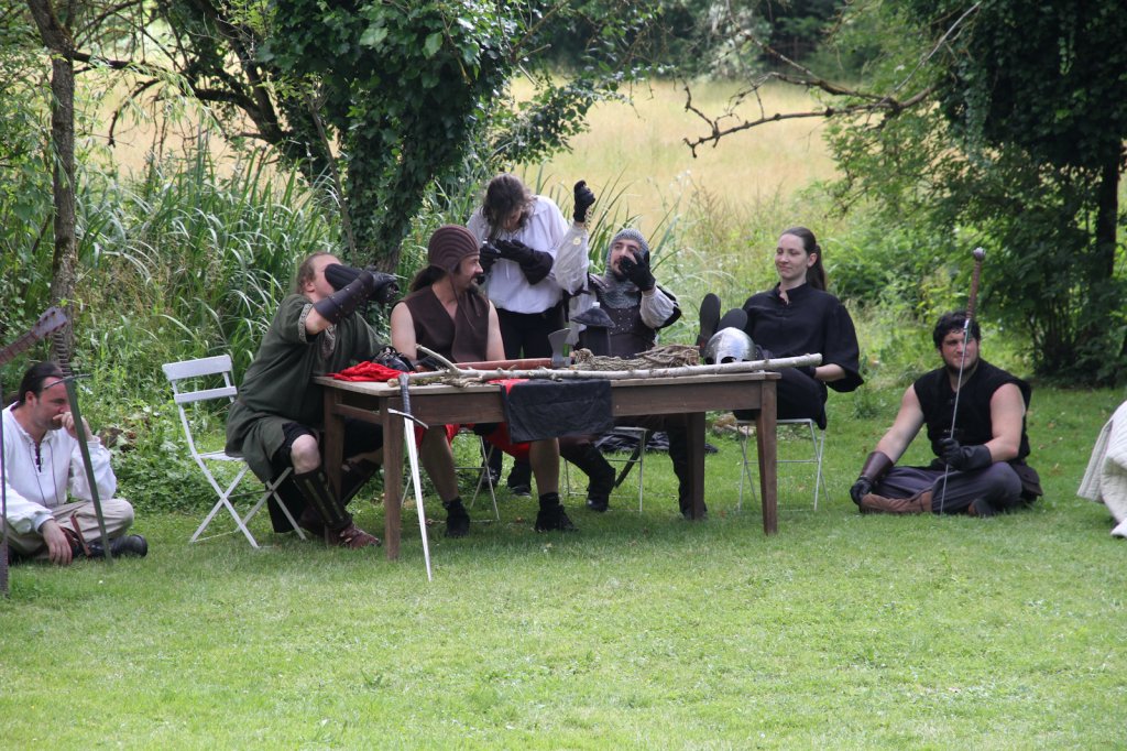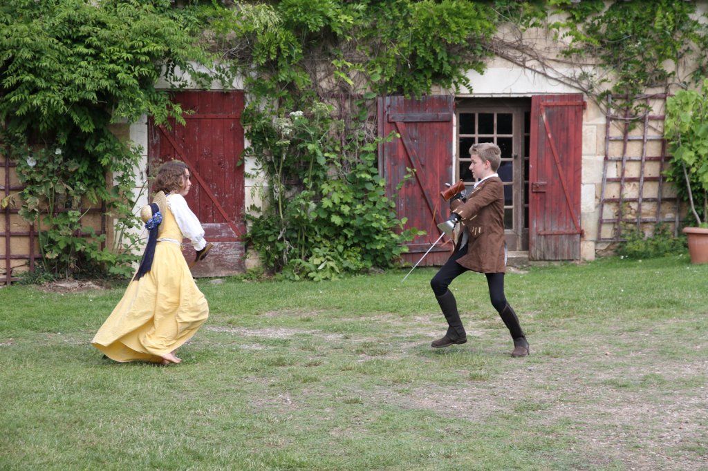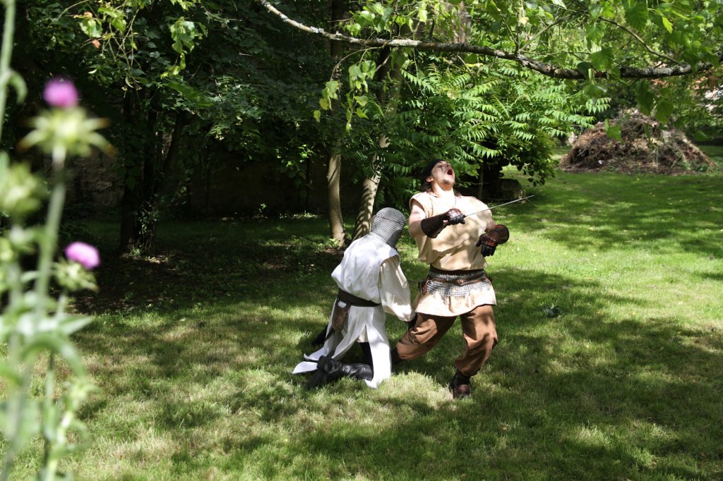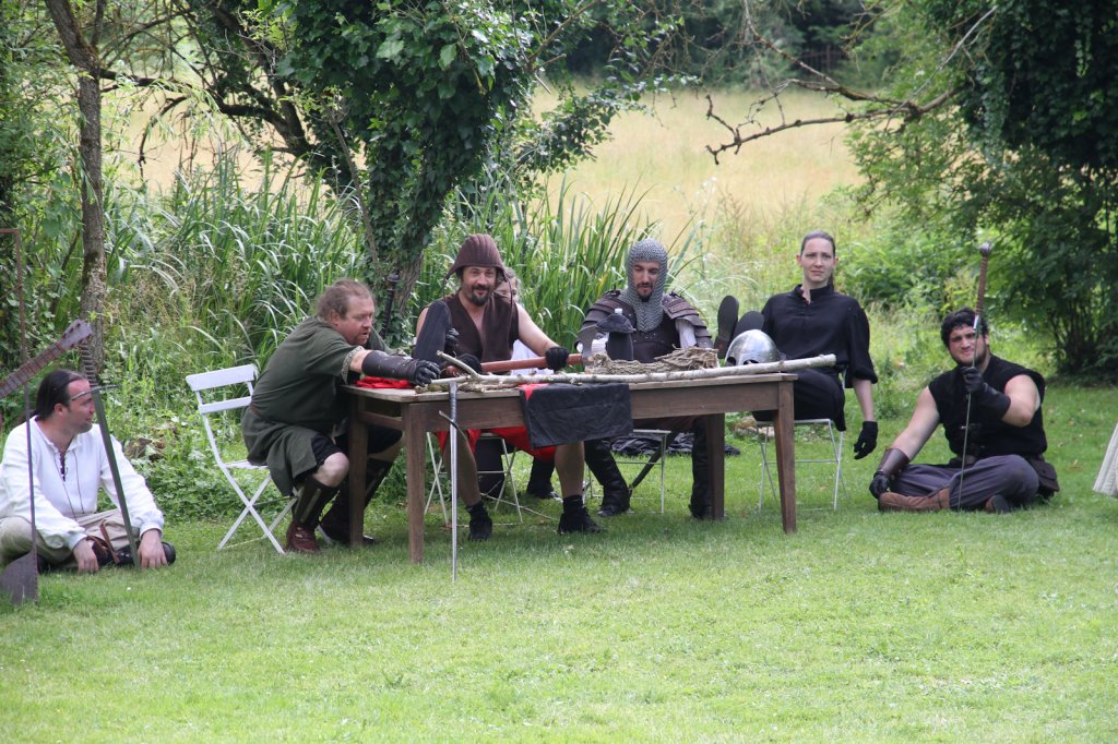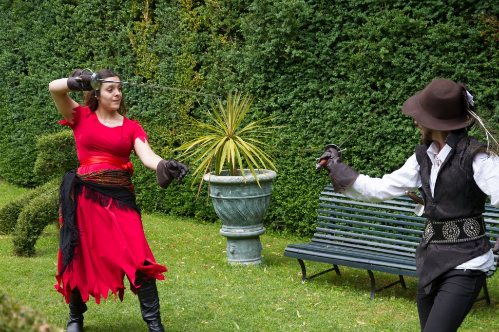La section artistique du club s'est produite Samedi 25 Juin dans les superbes jardins du prieuré de Laverré. Le spectacle préparé par Francis Rameaux a mis en scène 20 bretteurs du club. Décomposé entre 11 scènes, le spectacle comptait l'histoire peut connue du mystérieux vol des bijoux de la reine. Les spectacteurs ont pu apprécier le charme des jardins perturbés par le bruits des lames et les cris des combats.