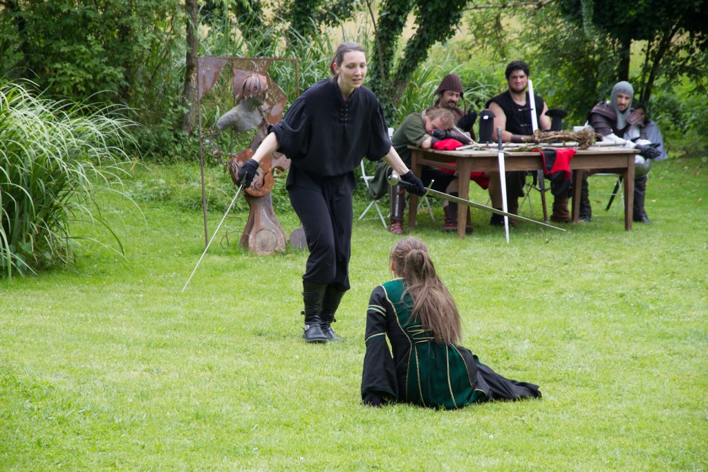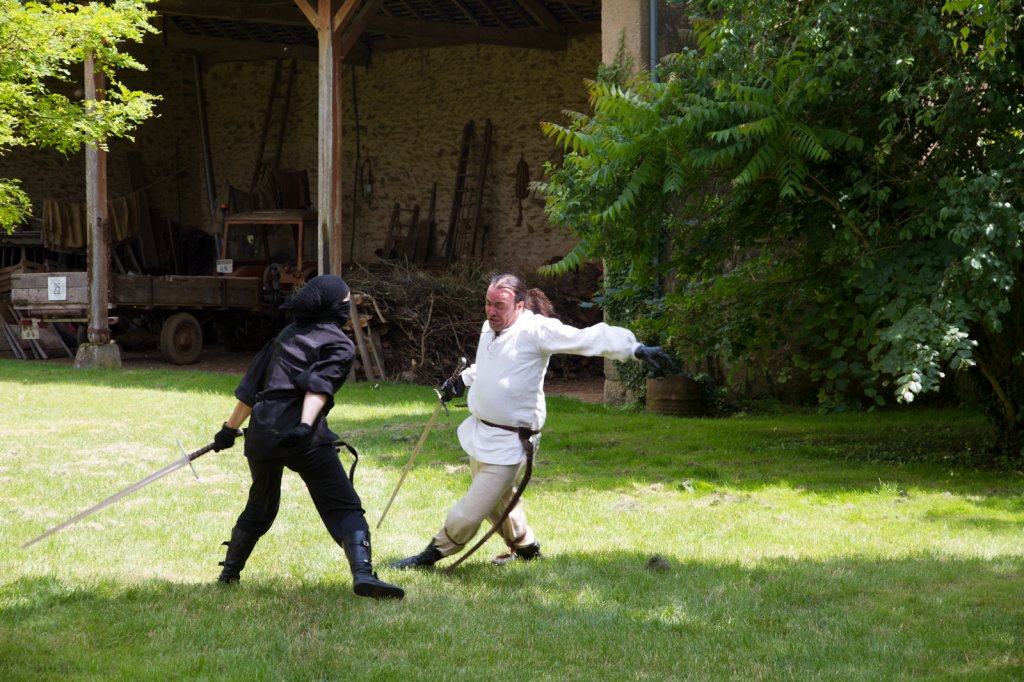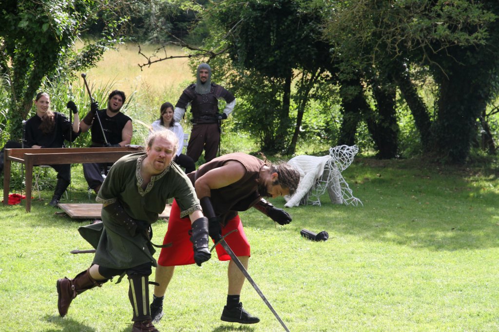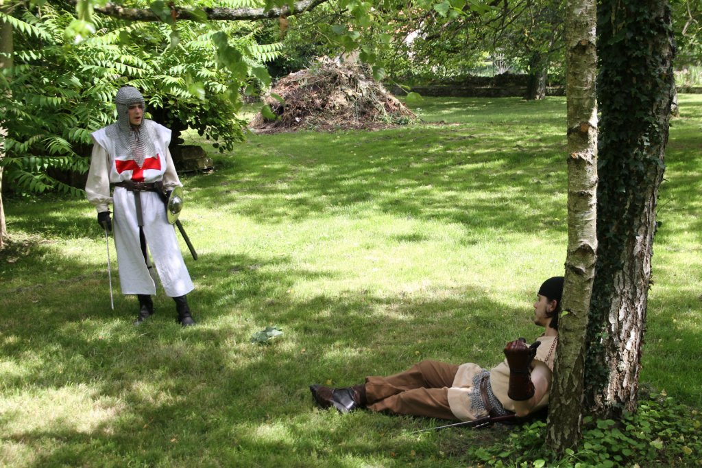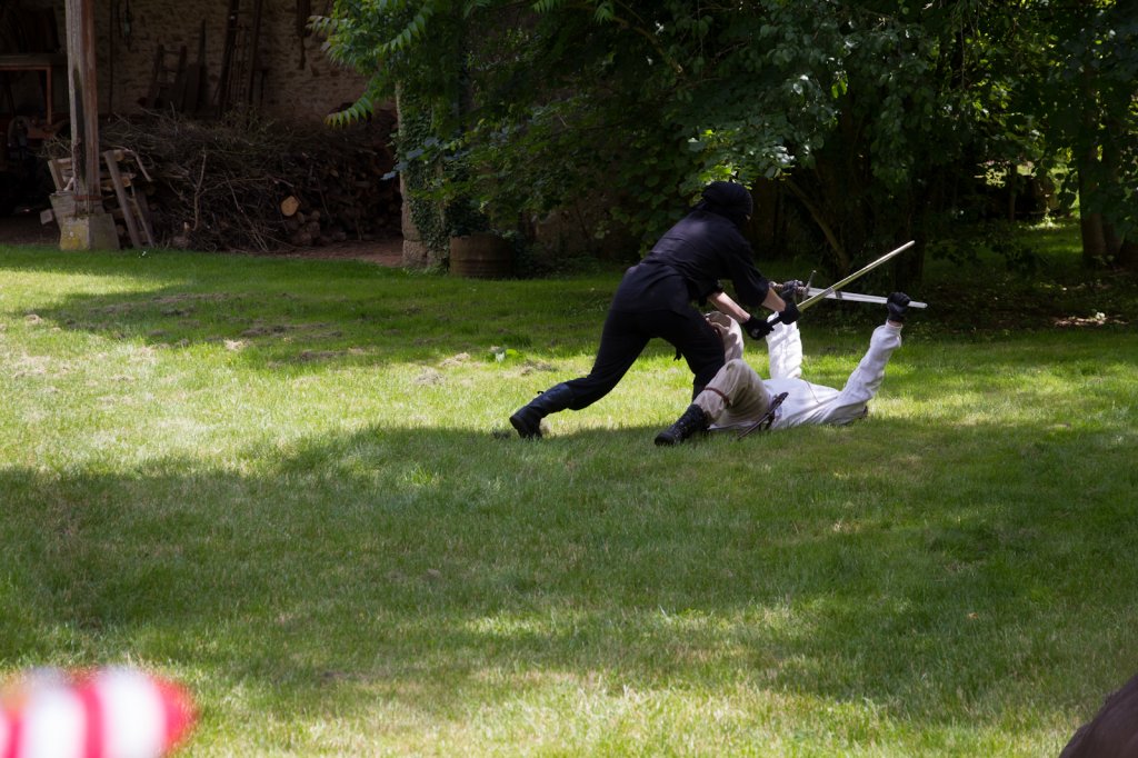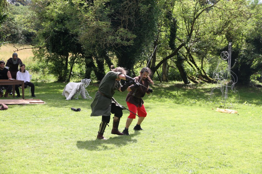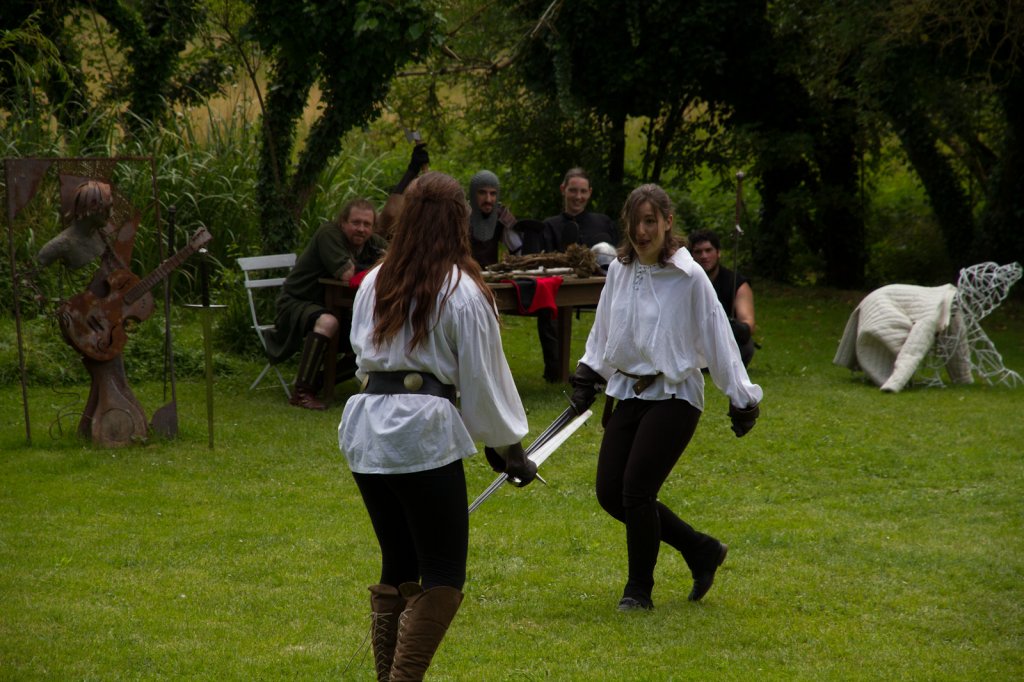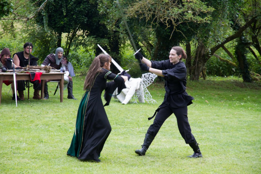 La section artistique du club s'est produite Samedi 25 Juin dans les superbes jardins du prieuré de Laverré. Le spectacle préparé par Francis Rameaux a mis en scène 20 bretteurs du club. Décomposé entre 11 scènes, le spectacle comptait l'histoire peut connue du mystérieux vol des bijoux de la reine. Les spectacteurs ont pu apprécier le charme des jardins perturbés par le bruits des lames et les cris des combats.