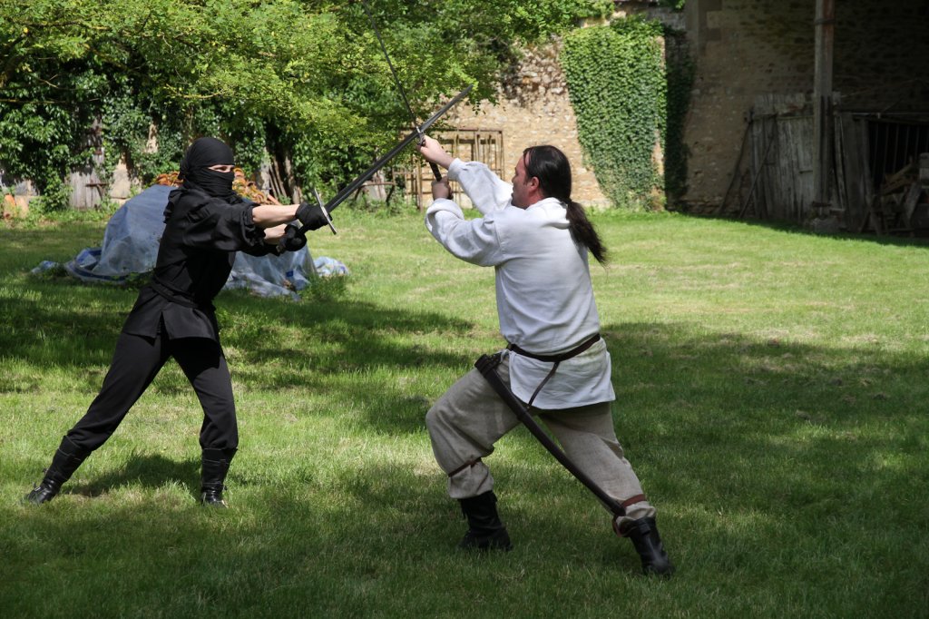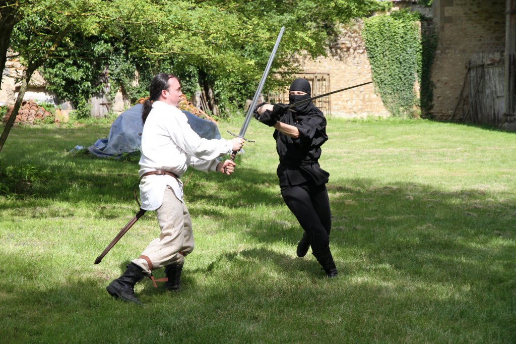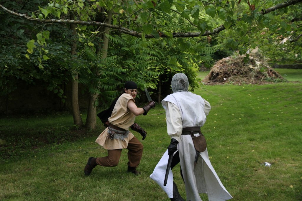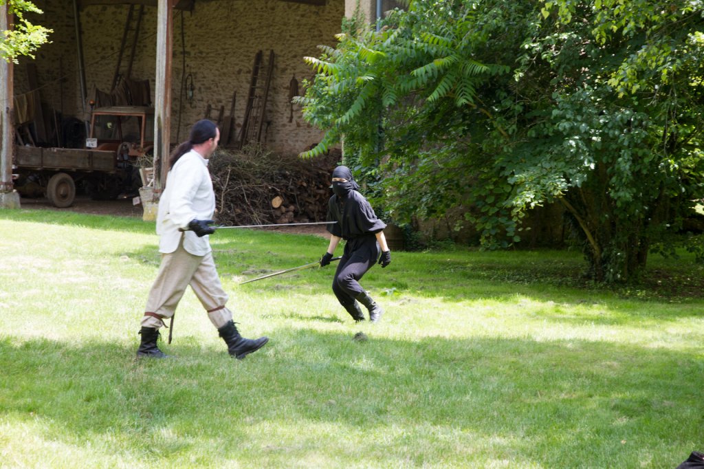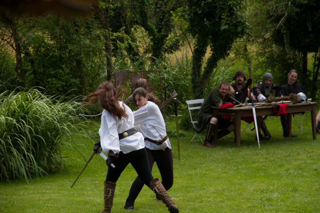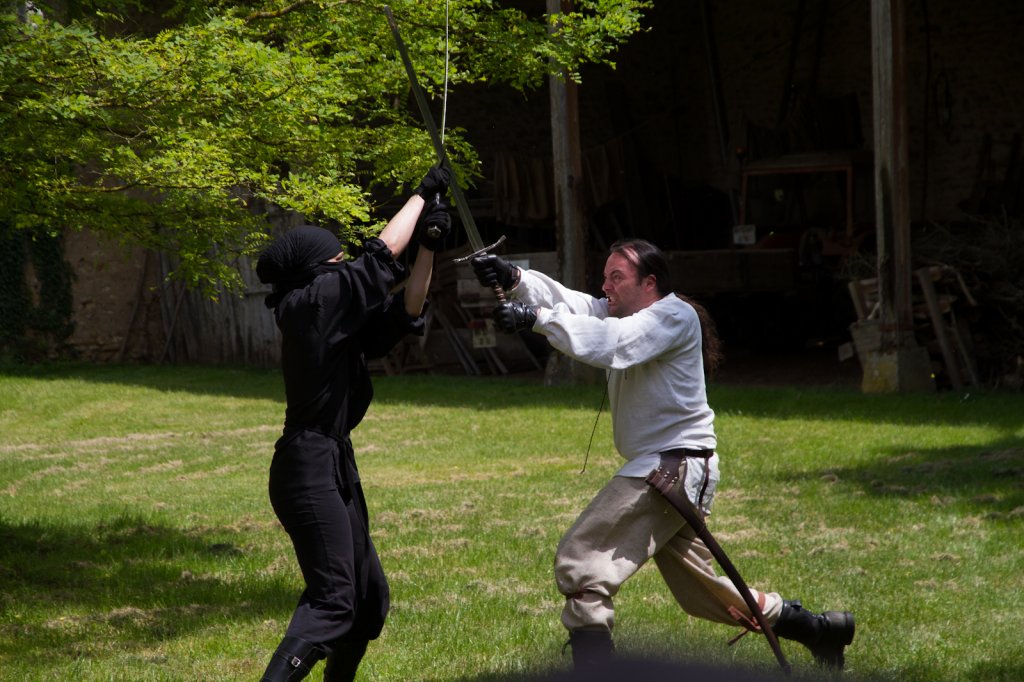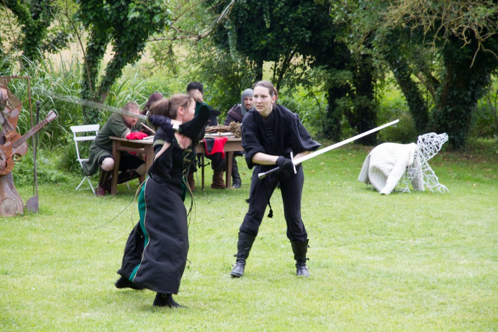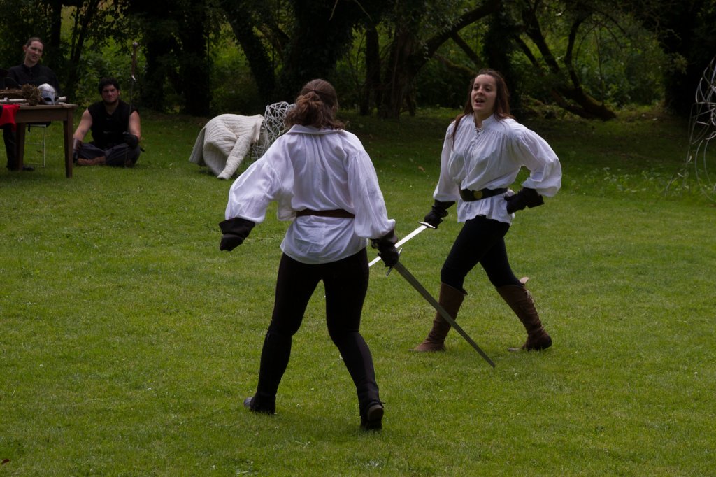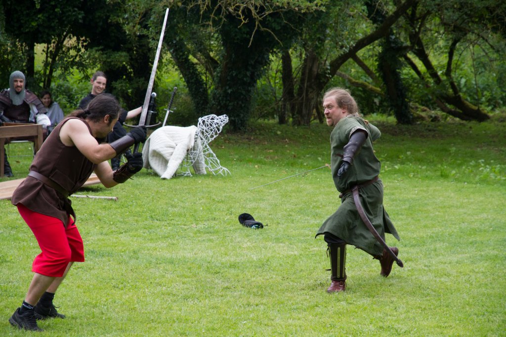 La section artistique du club s'est produite Samedi 25 Juin dans les superbes jardins du prieuré de Laverré. Le spectacle préparé par Francis Rameaux a mis en scène 20 bretteurs du club. Décomposé entre 11 scènes, le spectacle comptait l'histoire peut connue du mystérieux vol des bijoux de la reine. Les spectacteurs ont pu apprécier le charme des jardins perturbés par le bruits des lames et les cris des combats.