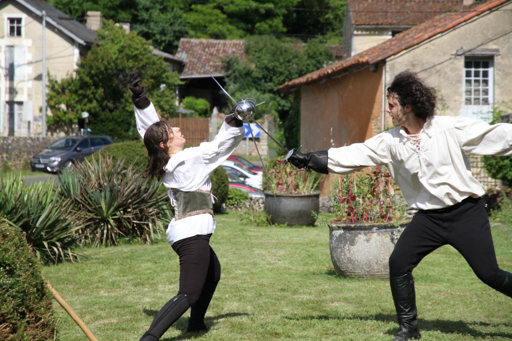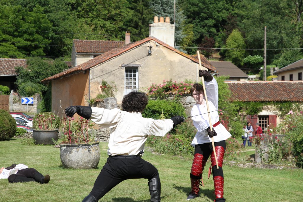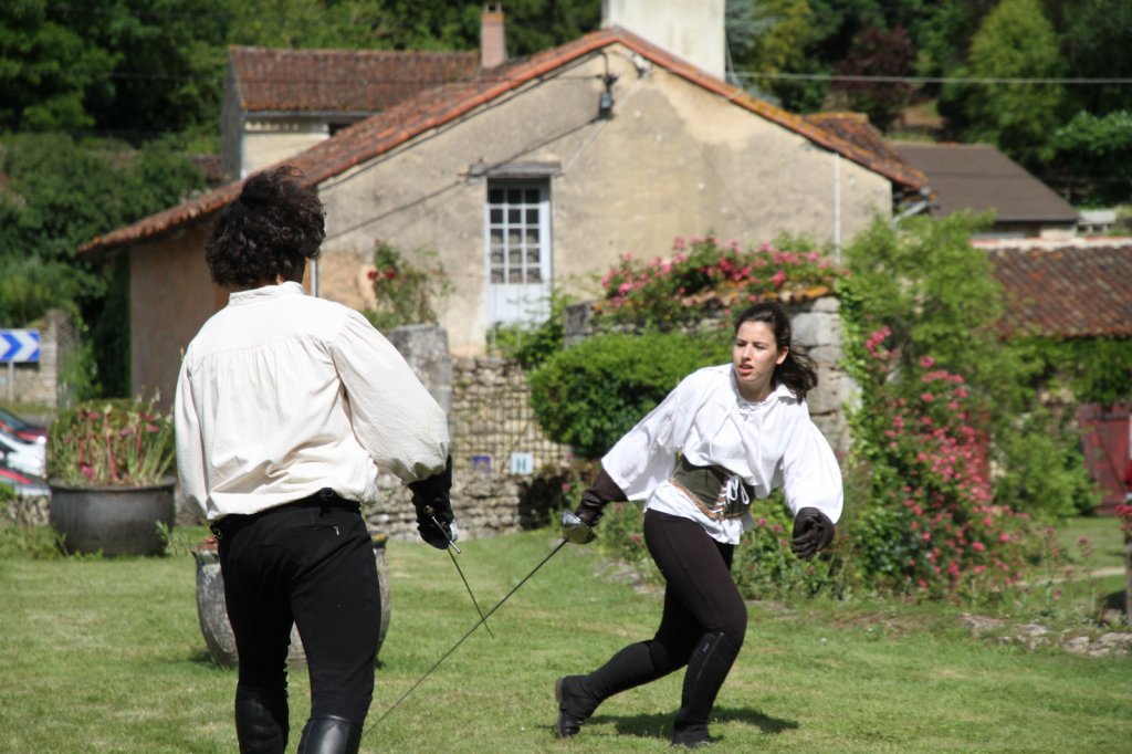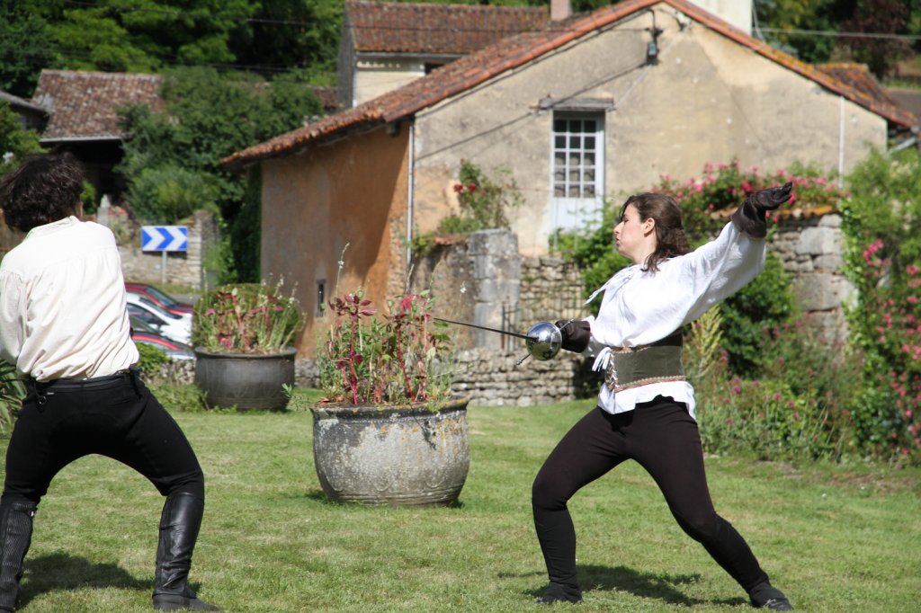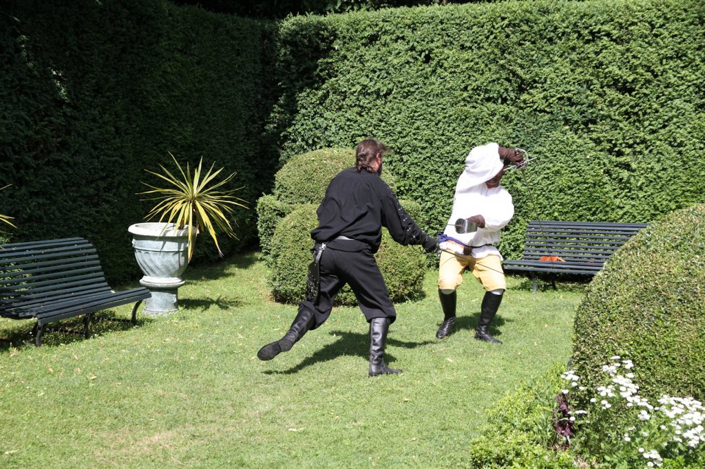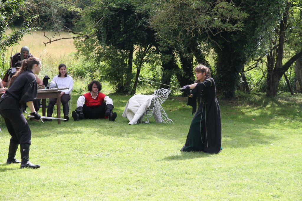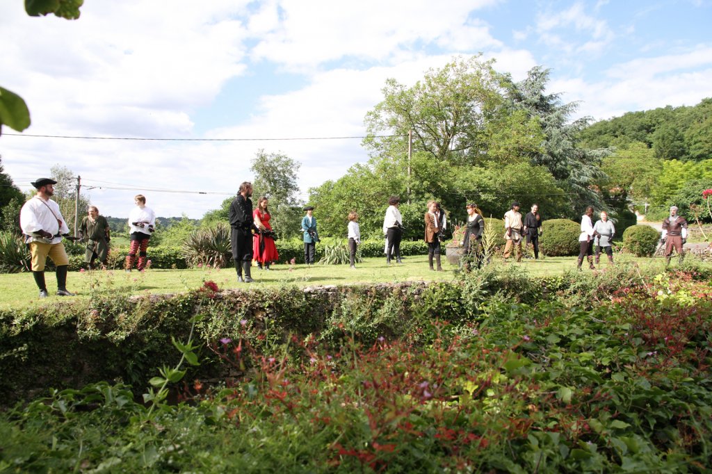 La section artistique du club s'est produite Samedi 25 Juin dans les superbes jardins du prieuré de Laverré. Le spectacle préparé par Francis Rameaux a mis en scène 20 bretteurs du club. Décomposé entre 11 scènes, le spectacle comptait l'histoire peut connue du mystérieux vol des bijoux de la reine. Les spectacteurs ont pu apprécier le charme des jardins perturbés par le bruits des lames et les cris des combats.