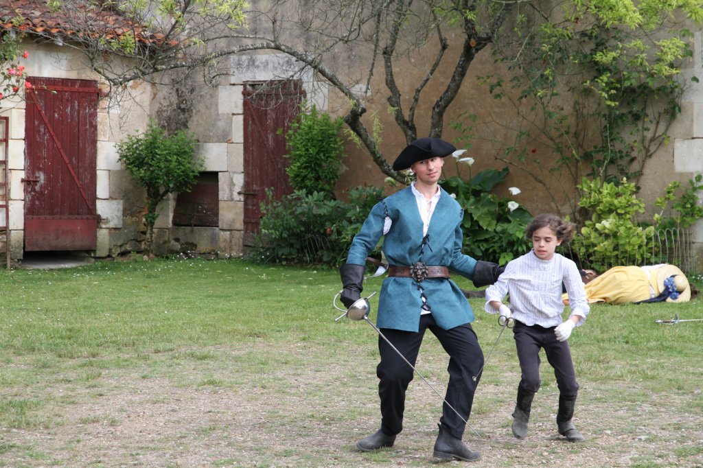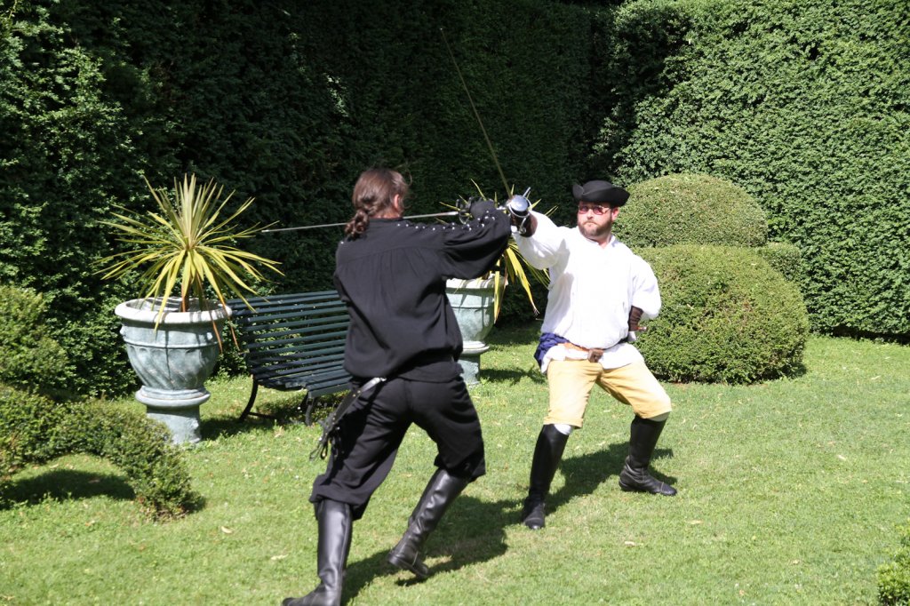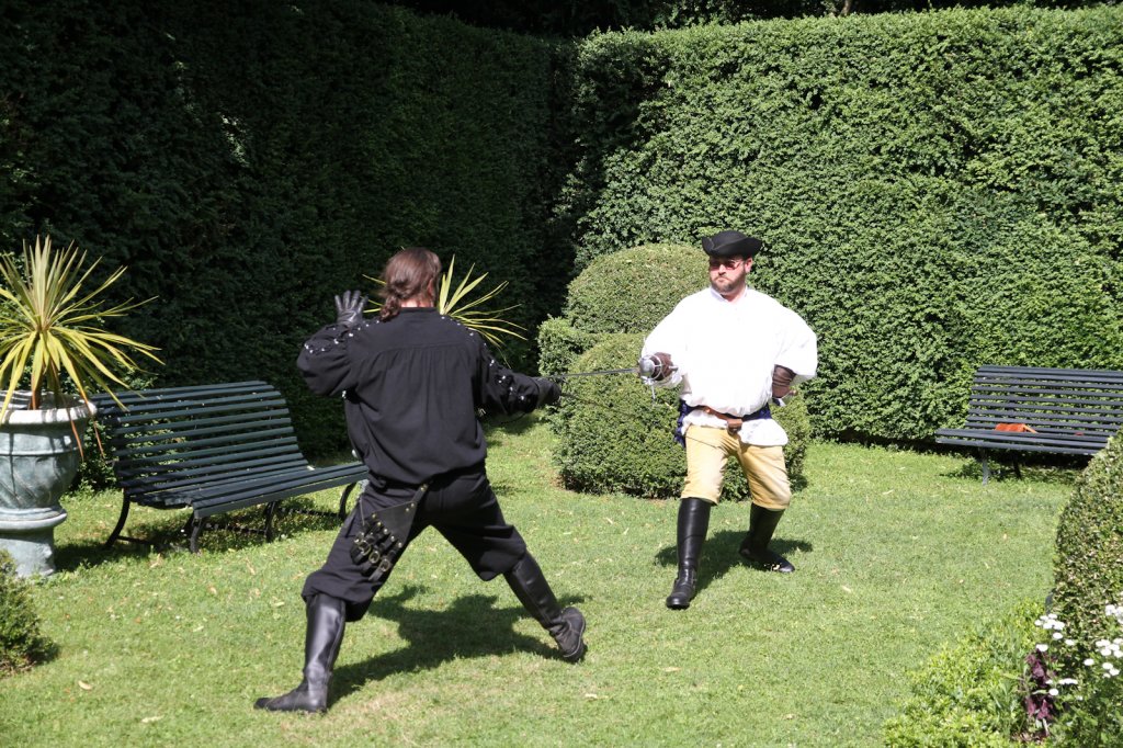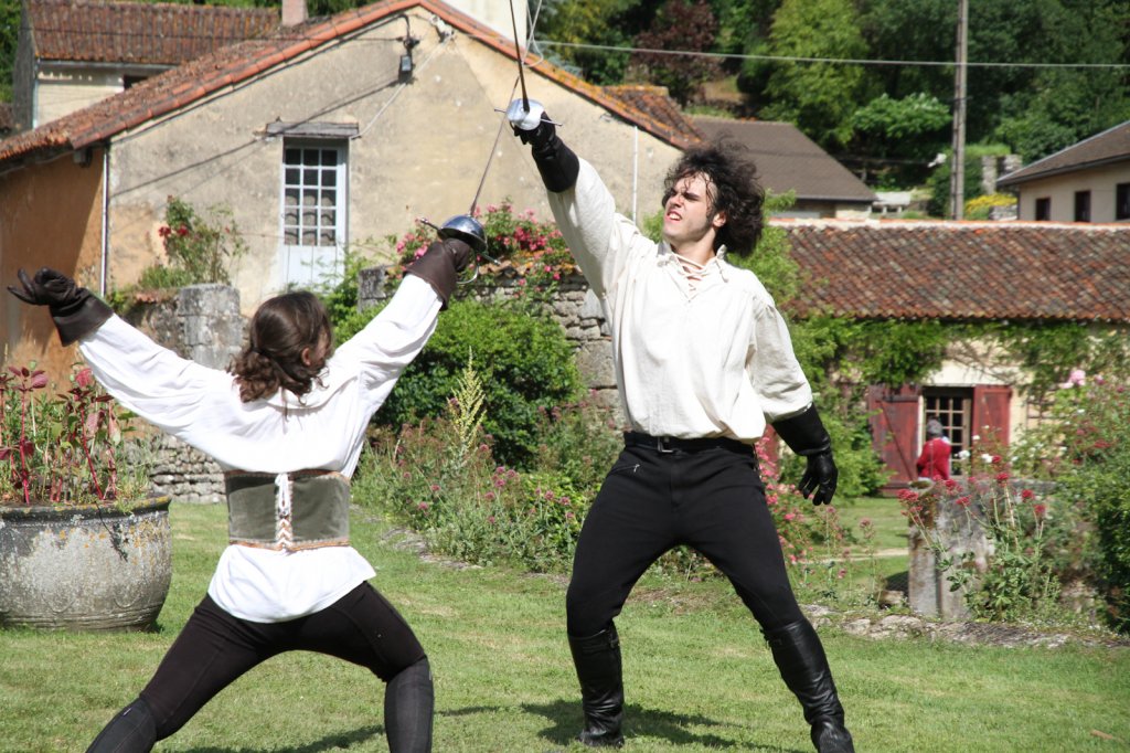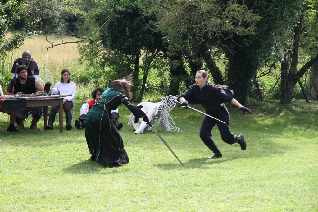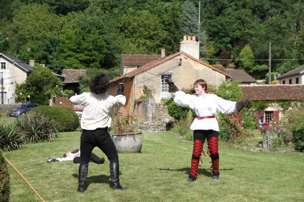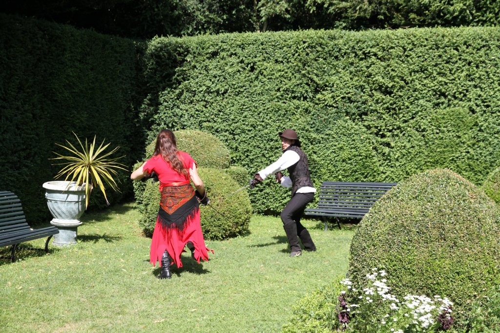 La section artistique du club s'est produite Samedi 25 Juin dans les superbes jardins du prieuré de Laverré. Le spectacle préparé par Francis Rameaux a mis en scène 20 bretteurs du club. Décomposé entre 11 scènes, le spectacle comptait l'histoire peut connue du mystérieux vol des bijoux de la reine. Les spectacteurs ont pu apprécier le charme des jardins perturbés par le bruits des lames et les cris des combats.
