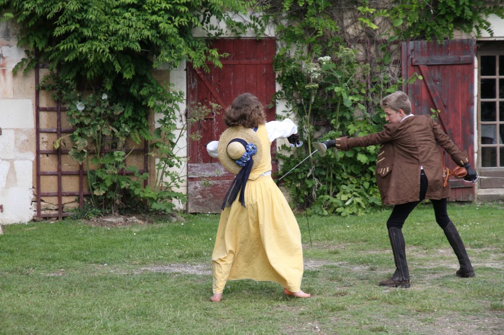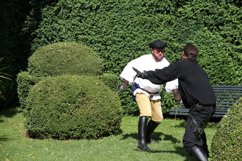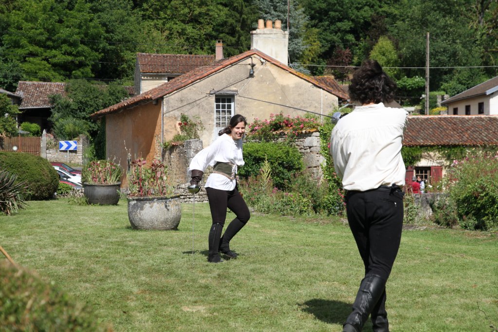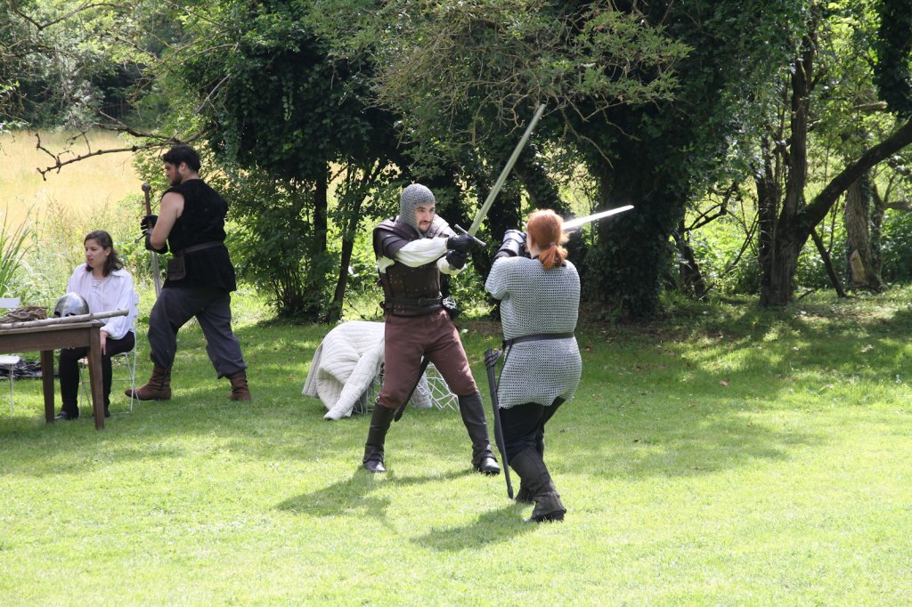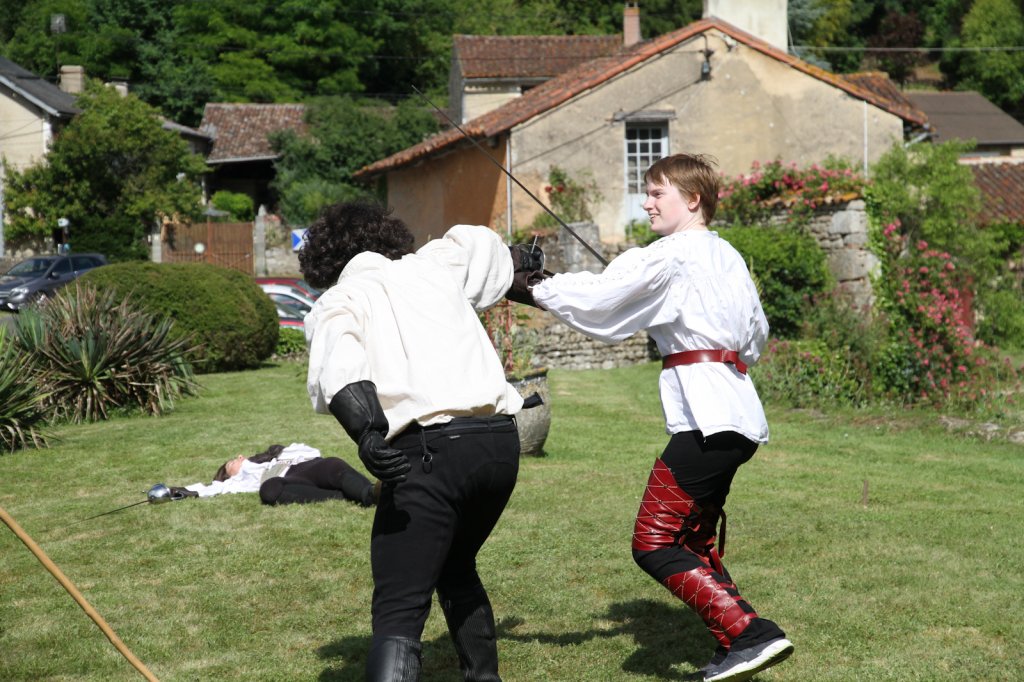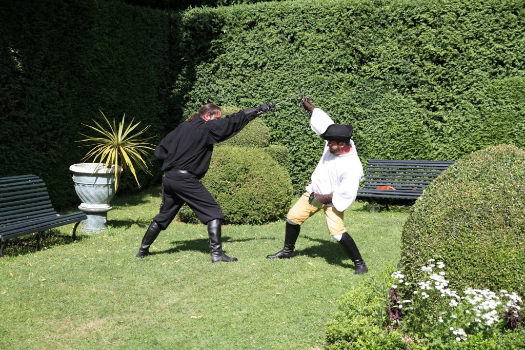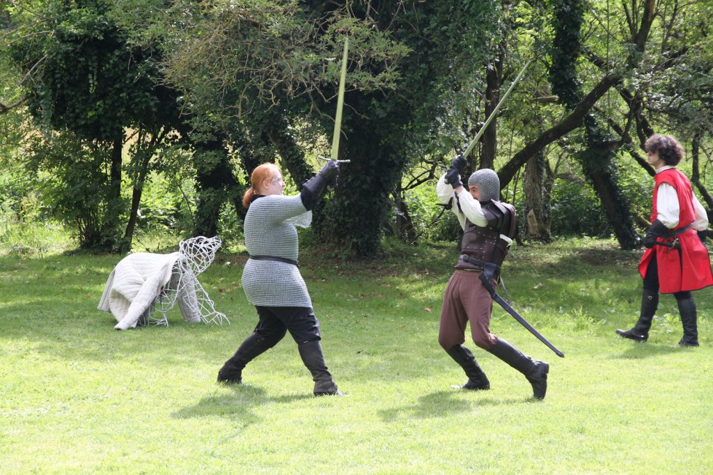 La section artistique du club s'est produite Samedi 25 Juin dans les superbes jardins du prieuré de Laverré. Le spectacle préparé par Francis Rameaux a mis en scène 20 bretteurs du club. Décomposé entre 11 scènes, le spectacle comptait l'histoire peut connue du mystérieux vol des bijoux de la reine. Les spectacteurs ont pu apprécier le charme des jardins perturbés par le bruits des lames et les cris des combats.