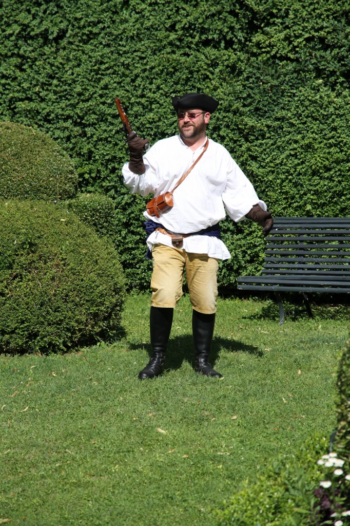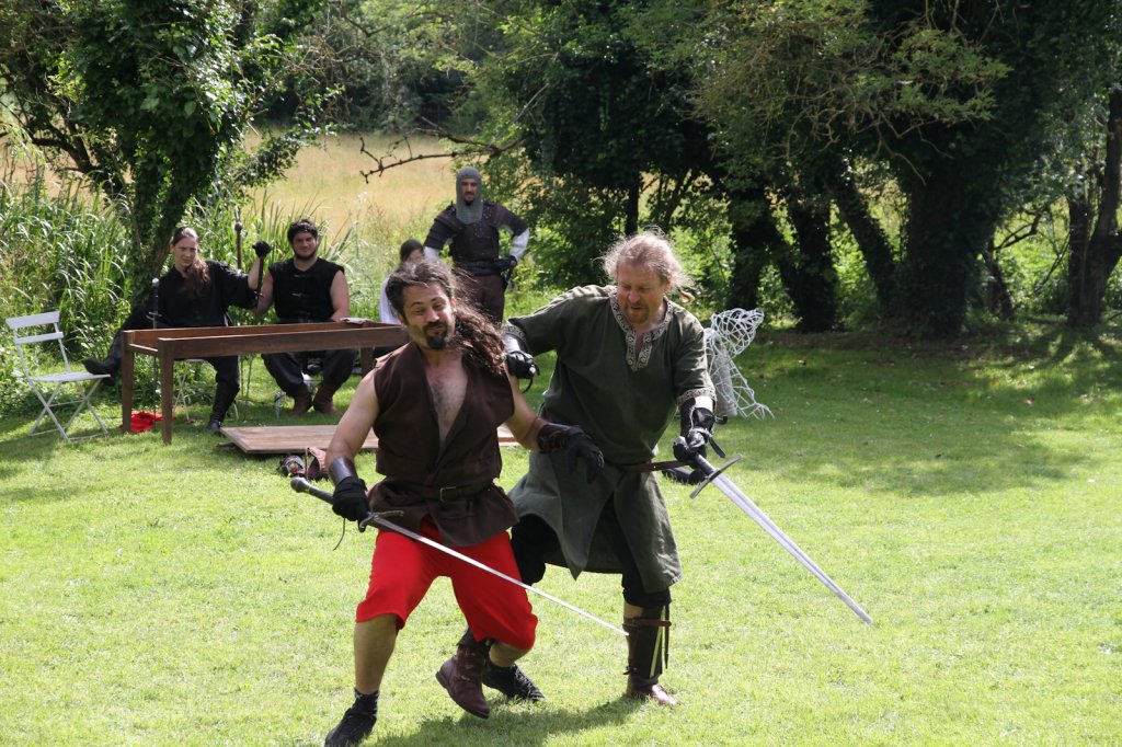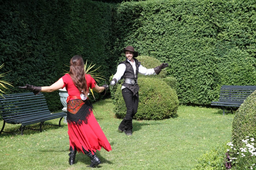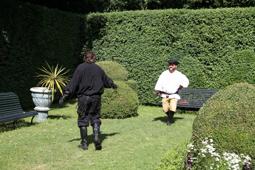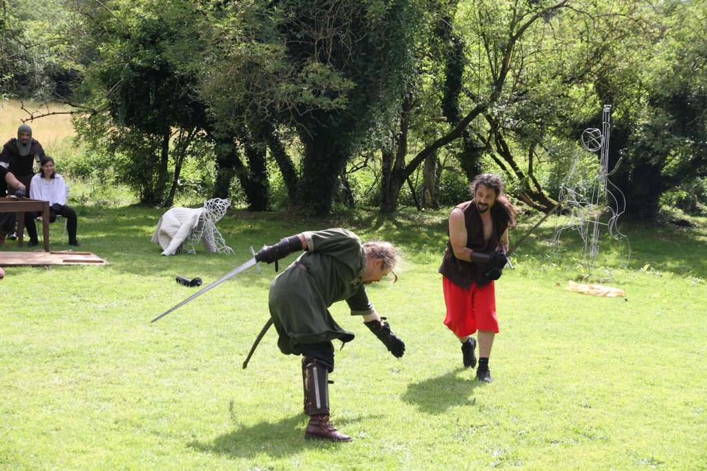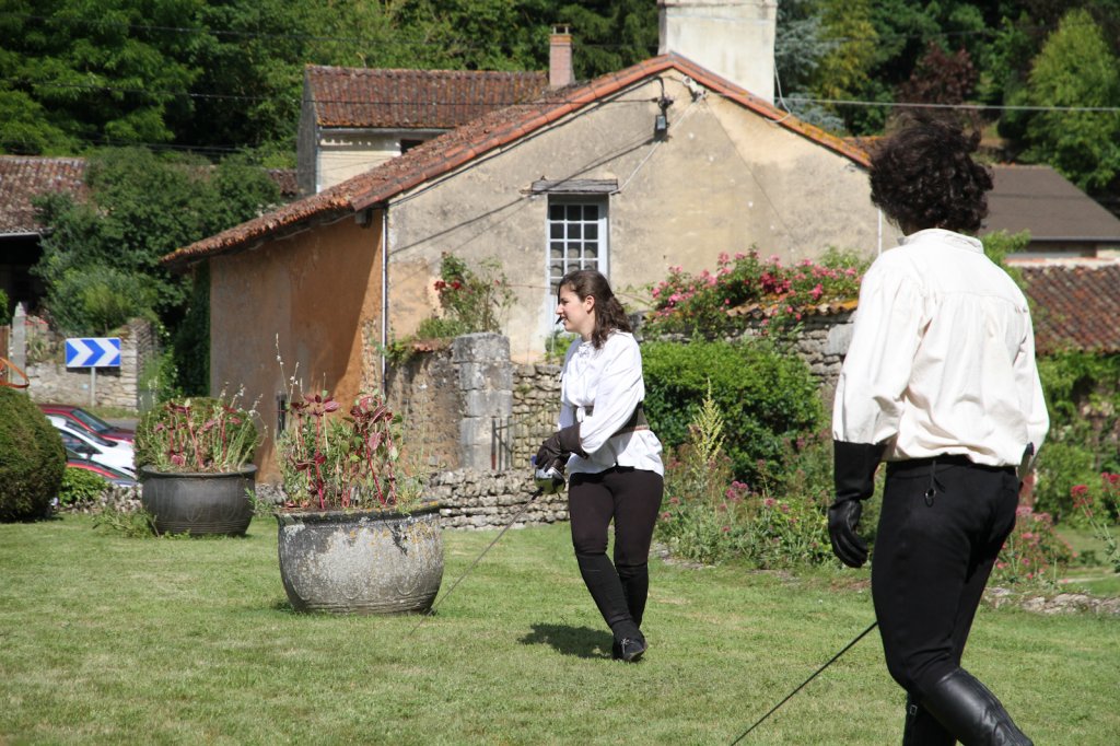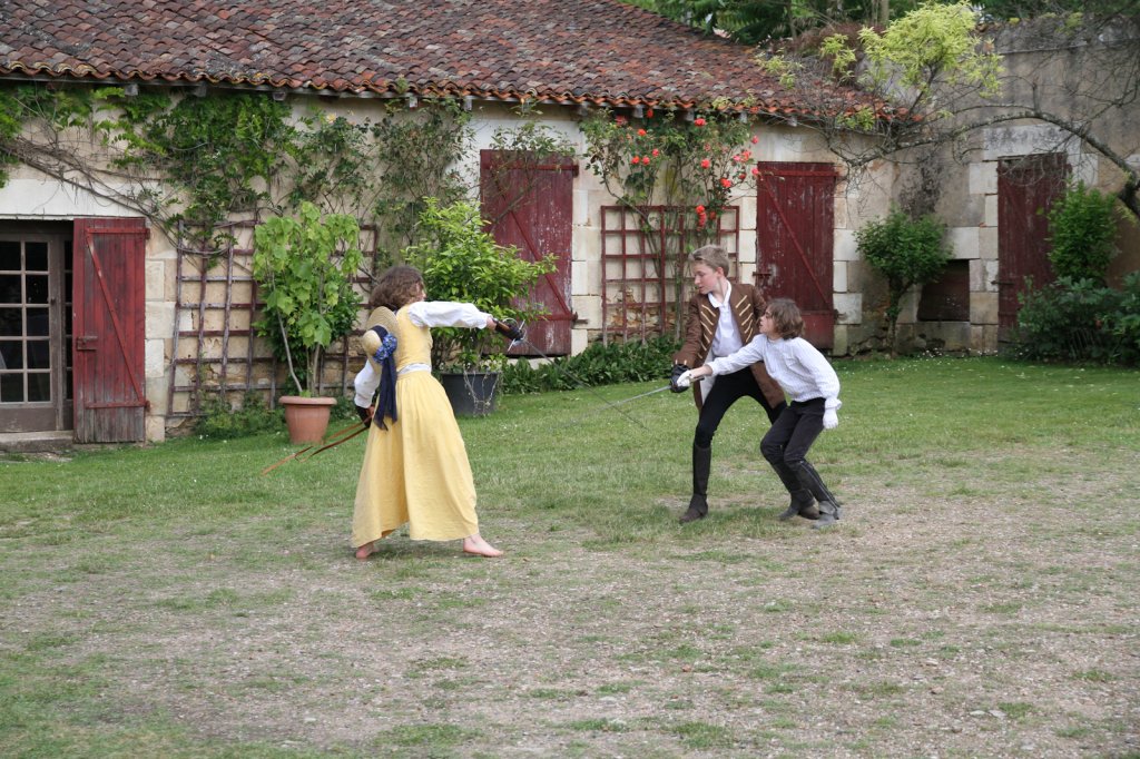 La section artistique du club s'est produite Samedi 25 Juin dans les superbes jardins du prieuré de Laverré. Le spectacle préparé par Francis Rameaux a mis en scène 20 bretteurs du club. Décomposé entre 11 scènes, le spectacle comptait l'histoire peut connue du mystérieux vol des bijoux de la reine. Les spectacteurs ont pu apprécier le charme des jardins perturbés par le bruits des lames et les cris des combats.